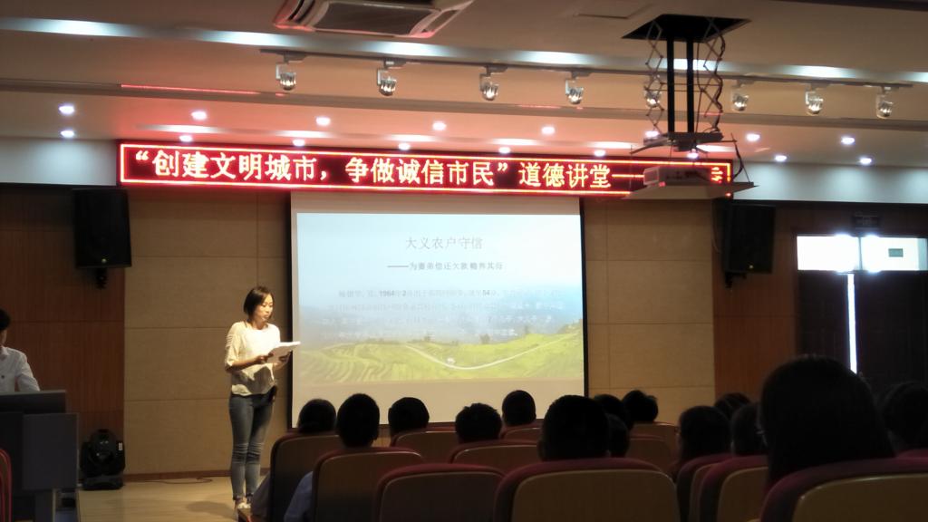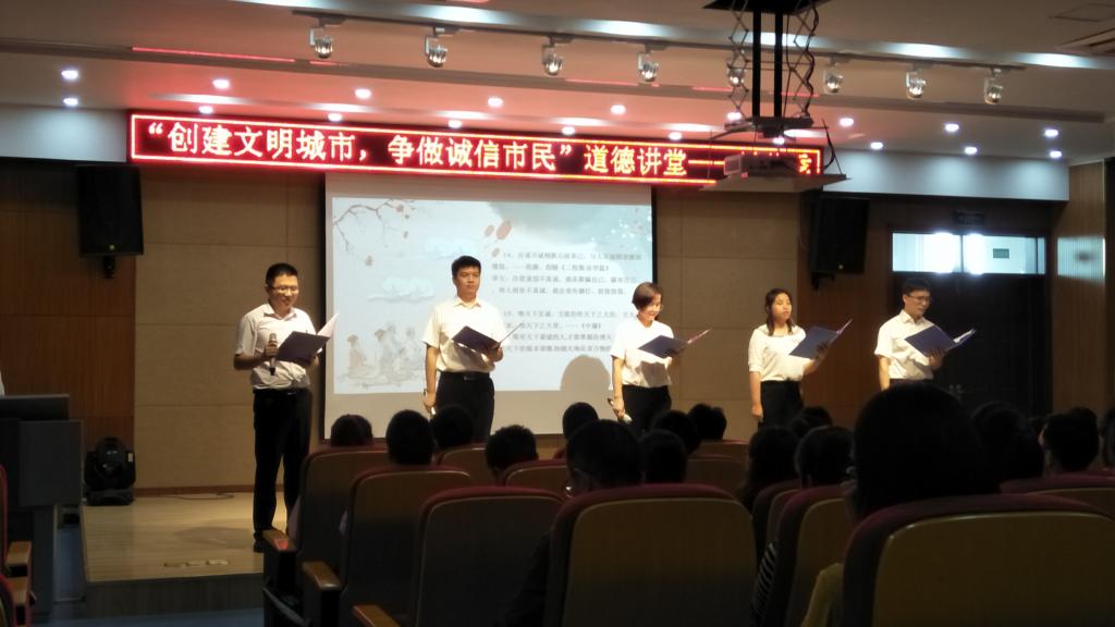 9月26日下午,经贸系党总支组织全体党员教师参加道德讲堂活动,此次活动是由市财政局和经贸系团总支共同举办的,活动的主题围绕“诚信”展开,主要包含6个环节,唱诚信歌、看诚信短片、讲诚信故事、诵诚信名言、讲诚信感悟、助诚信学生,形式丰富多彩,内容异彩纷呈。通过此次活动,党员教师们表示:诚实守信,是中华民族的传统美德;诚信是做人之本,是兴业之基,是生命之水;无论以后在工作中还是生活中,都应该起到模范带头作用,诚实做人,诚信做事,才能利人,利己,利家,利国,从而实现人生价值,成就梦想!