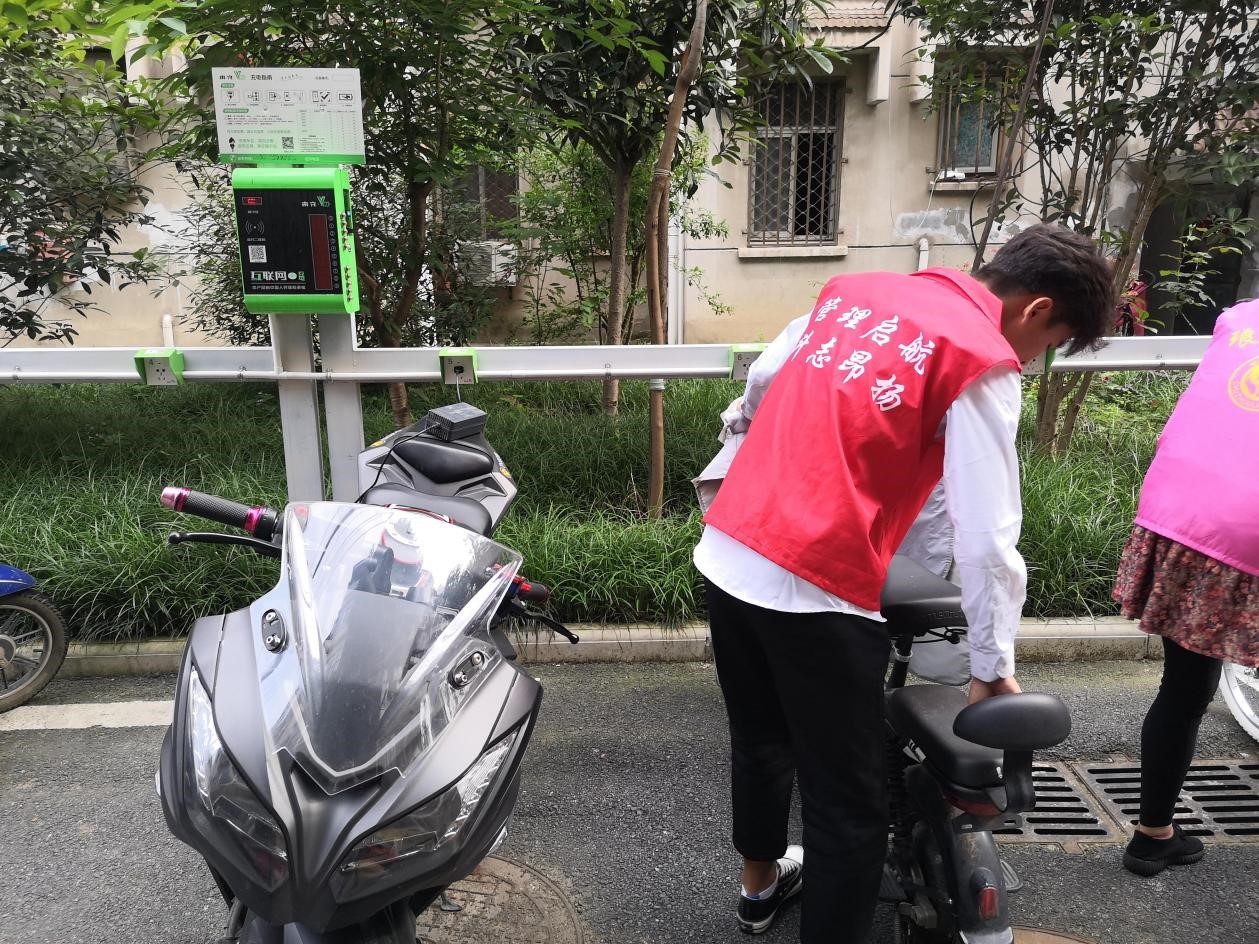 志愿者们来到社区,帮助整理自行车棚,把乱停乱放的自行车、电动车摆放整齐,然后清理小区垃圾,使得社区的环境面貌焕然一新。本次活动持续了一个小时左右,志愿团队成员热心、认真、周到的服务赢得了社区群众的赞扬。