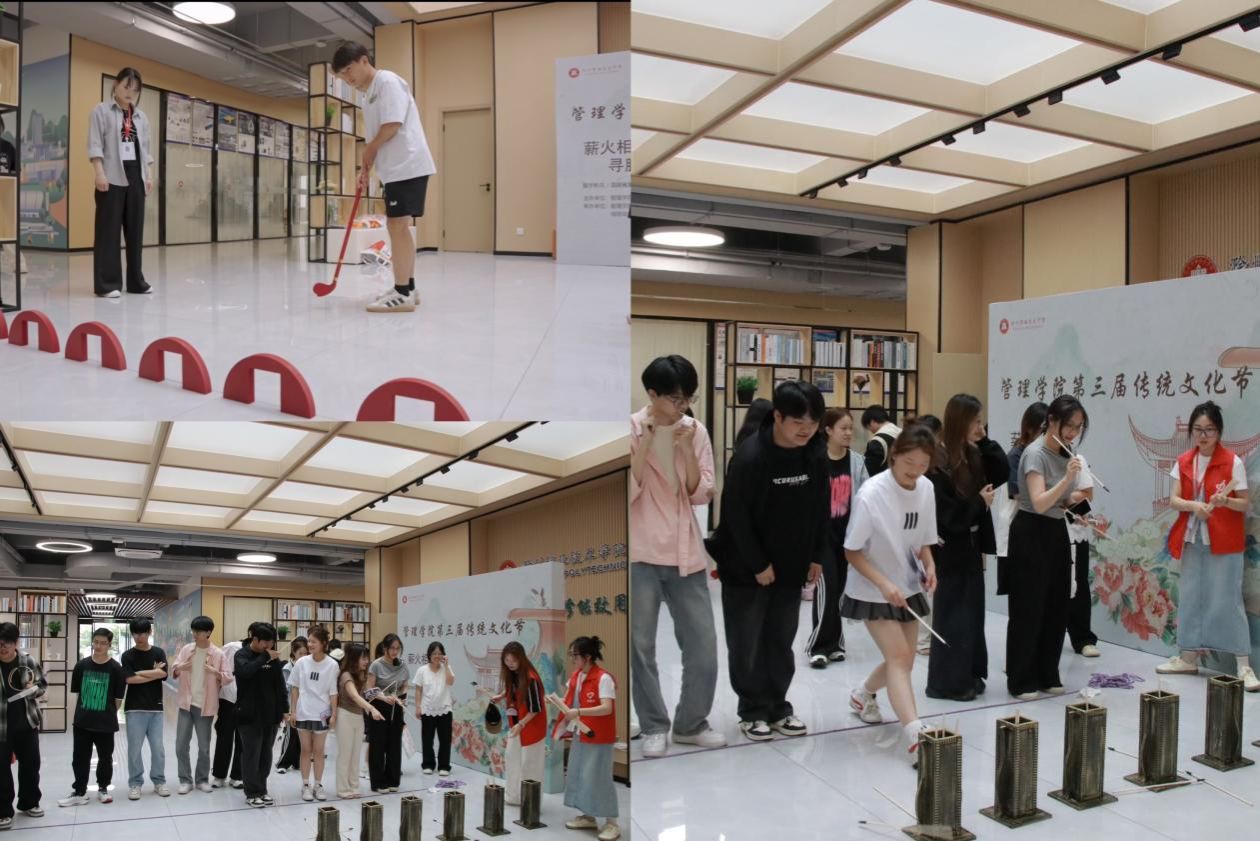 5月14日16:00,“传统文化心理游园会”在校一站式社区拉开活动序幕。活动与传统文化节相结合,现场设置的投壶、套圈等传统游戏吸引了众多学生踊跃参与。投壶区,同学们手持箭矢,全神贯注地投向远处的壶,每一次成功投中都引发阵阵欢呼;套圈区,大家摩拳擦掌,瞄准心仪的小礼品,跃跃欲试。现场气氛热烈非凡,欢声笑语不断。