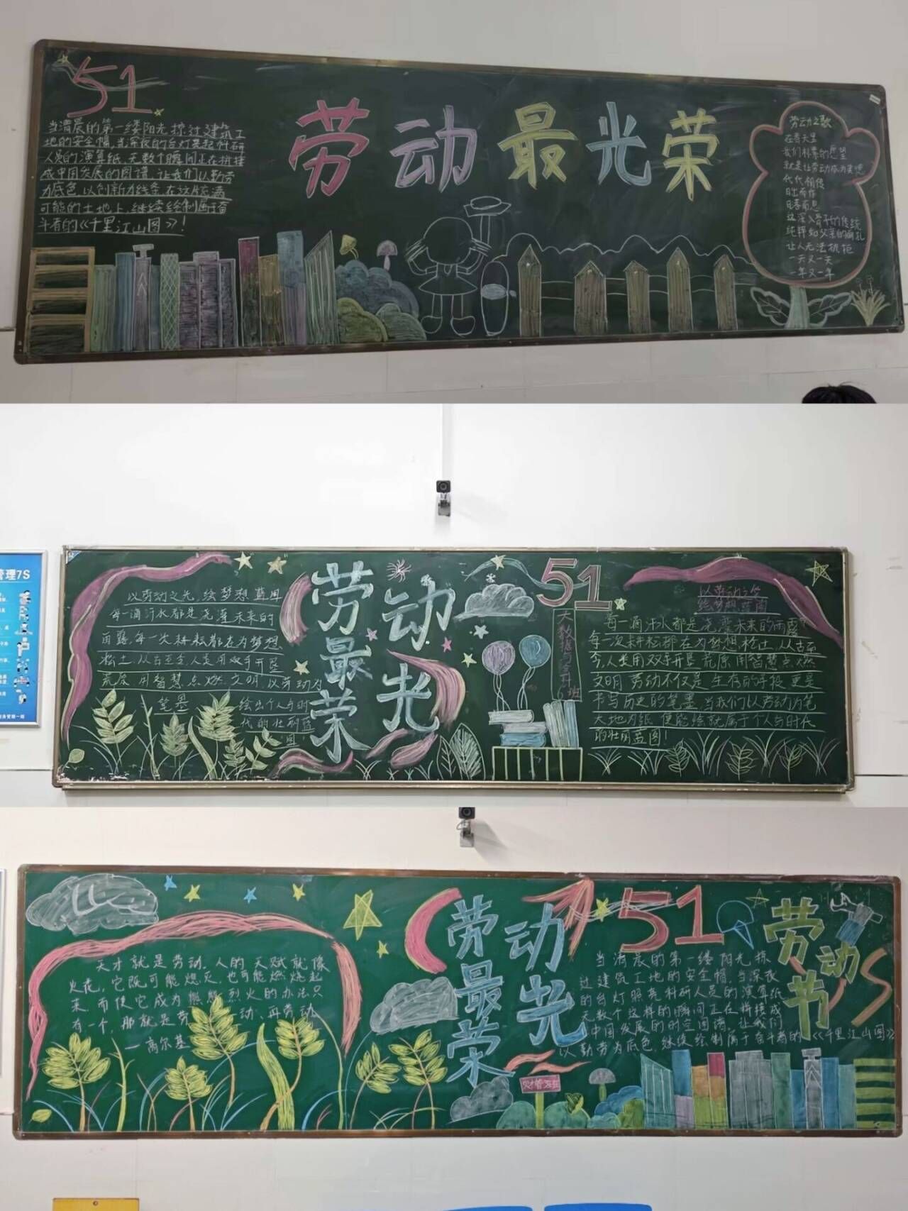 各班同学精心设计黑板报内容,通过图文并茂的形式展现劳动精神的深刻内涵。有的班级详细介绍了五一劳动节的起源,让同学们深刻了解到劳动权益的来之不易;有的班级摘录了“劳动是一切知识的源泉”等名人名言,激励大家崇尚劳动、尊重劳动;还有的班级绘制了农民、工人等劳动者形象,展现劳动的多样与伟大。
