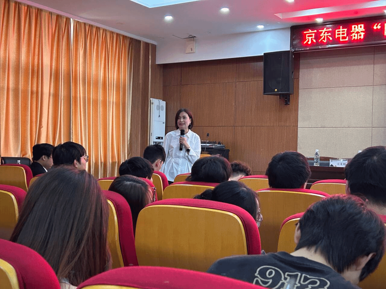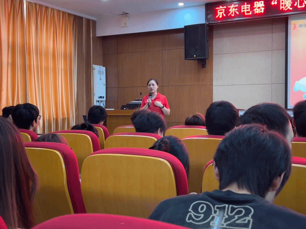 李超代表校方致辞,他对曹友香一行表示热烈欢迎,对京东电器滁州店资助困难学生的善举表示衷心感谢。李超强调校企合作对于培养学生实践能力、拓宽就业渠道的重要性,并充分肯定了京东电器作为知名企业主动走进校园、关爱学子的社会责任感。他鼓励同学们要珍惜学习机会,懂得感恩,并积极从企业的分享中汲取营养,为未来的职业生涯做好充分准备。