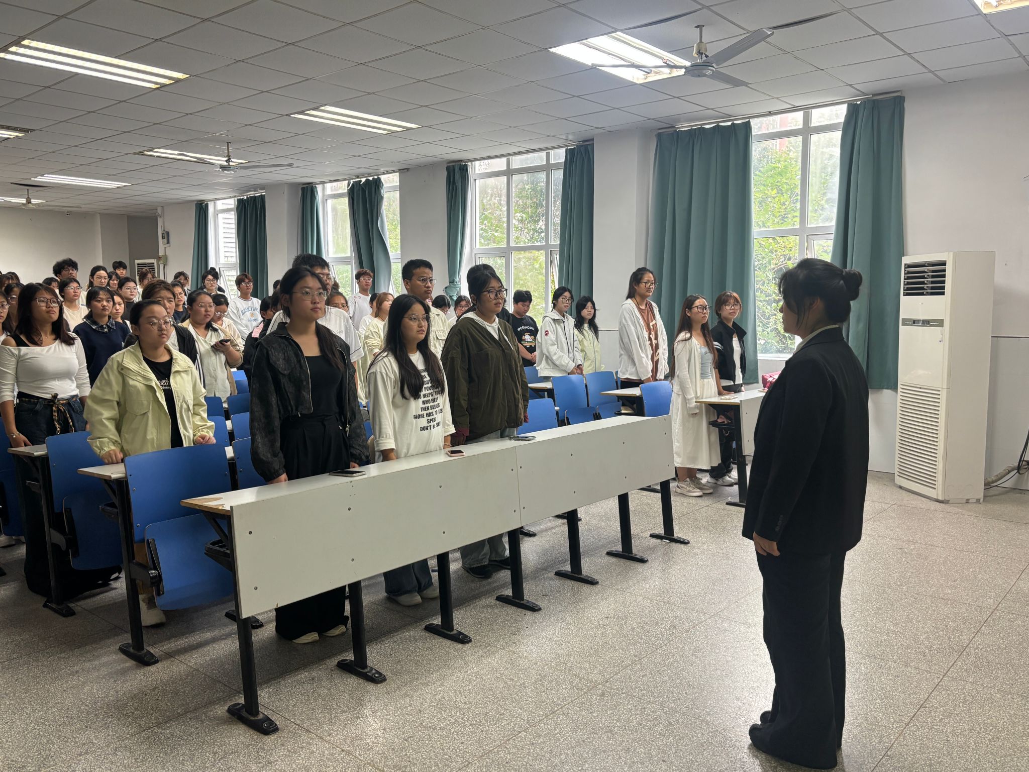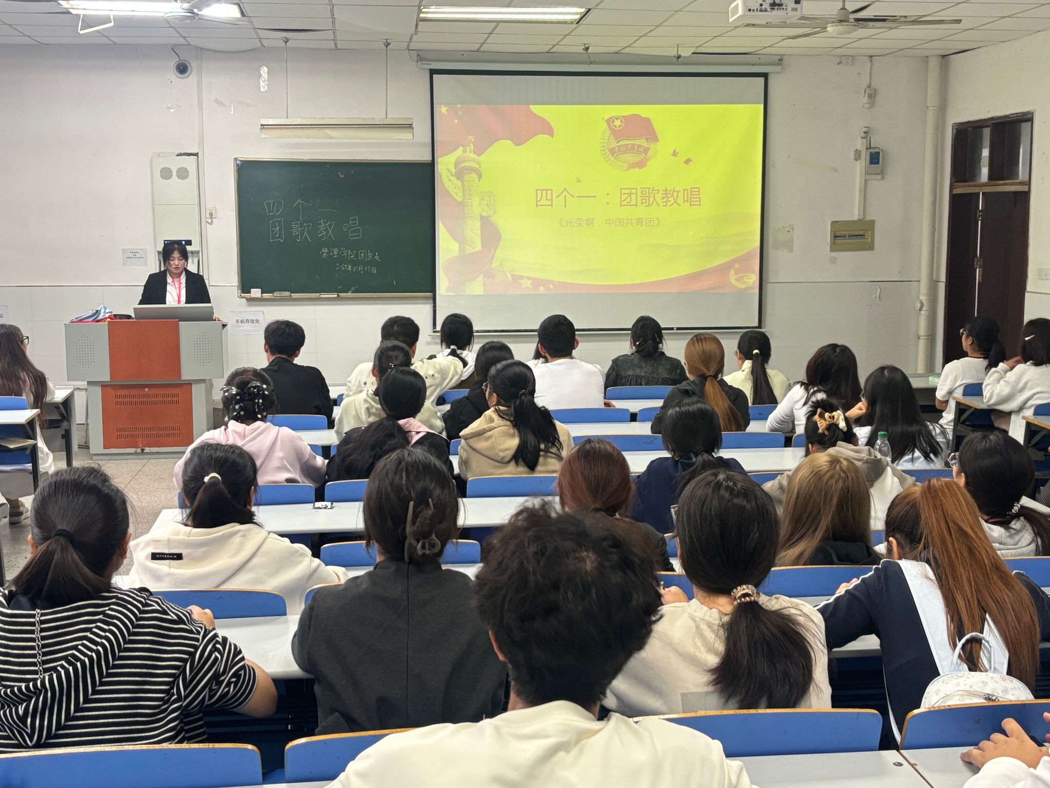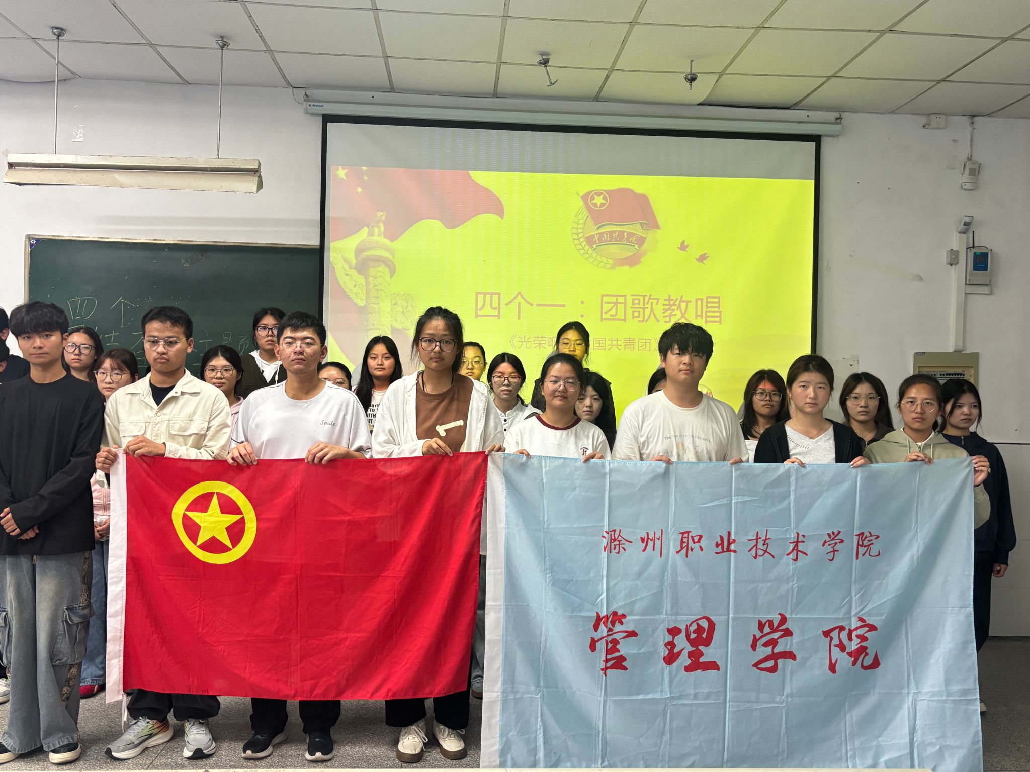 为深入推进“四个一”团员教育工作,进一步强化团员的身份认同感与使命担当意识,2025年10月19日中午,管理学院团总支在1102教室组织开展“团歌教唱”活动,管理学院2025级全体共青团员参加。