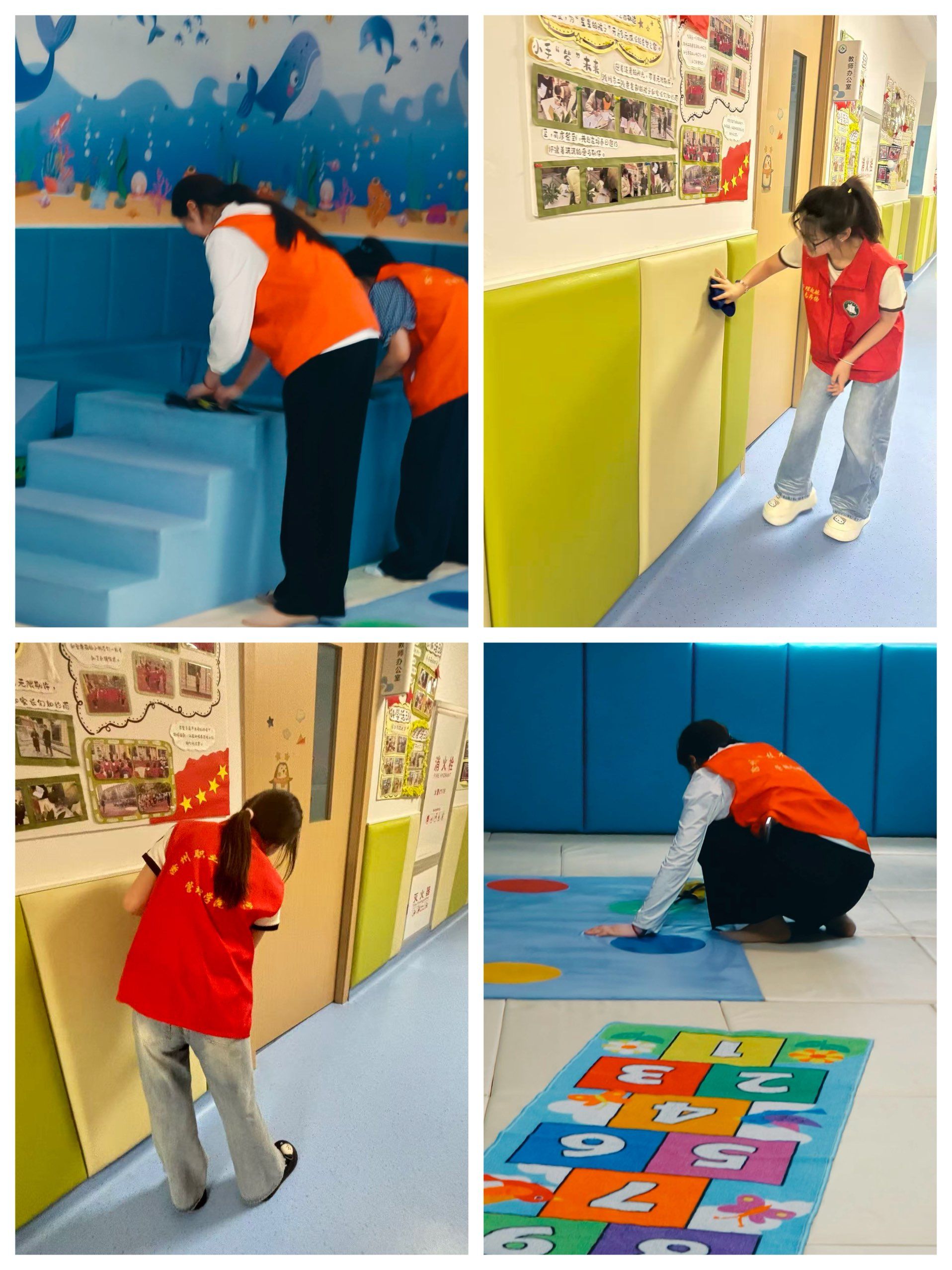 抵达医院后,志愿者们首先以饱满的热情投入到医院环境的清洁与整理工作中。他们细致地打扫活动区域、擦拭公共设施,不放过任何一个卫生死角,致力于为孩子们营造一个更加洁净、舒适、安全的康复环境。志愿者们忙碌的身影和无私奉献的精神,赢得了医护人员的一致赞许。卫生清扫结束后,志愿者们化身“爱心陪伴员”,与孤独症儿童们展开了温馨互动。面对孩子们的沉默与腼腆,志愿者们始终保持耐心与包容,通过搭积木、玩拼图、做小游戏等趣味形式,耐心引导孩子们开口表达、动手参与,用真诚的笑容和温柔的陪伴,逐渐拉近与孩子们的距离,为孩子们的世界注入温暖与光亮。