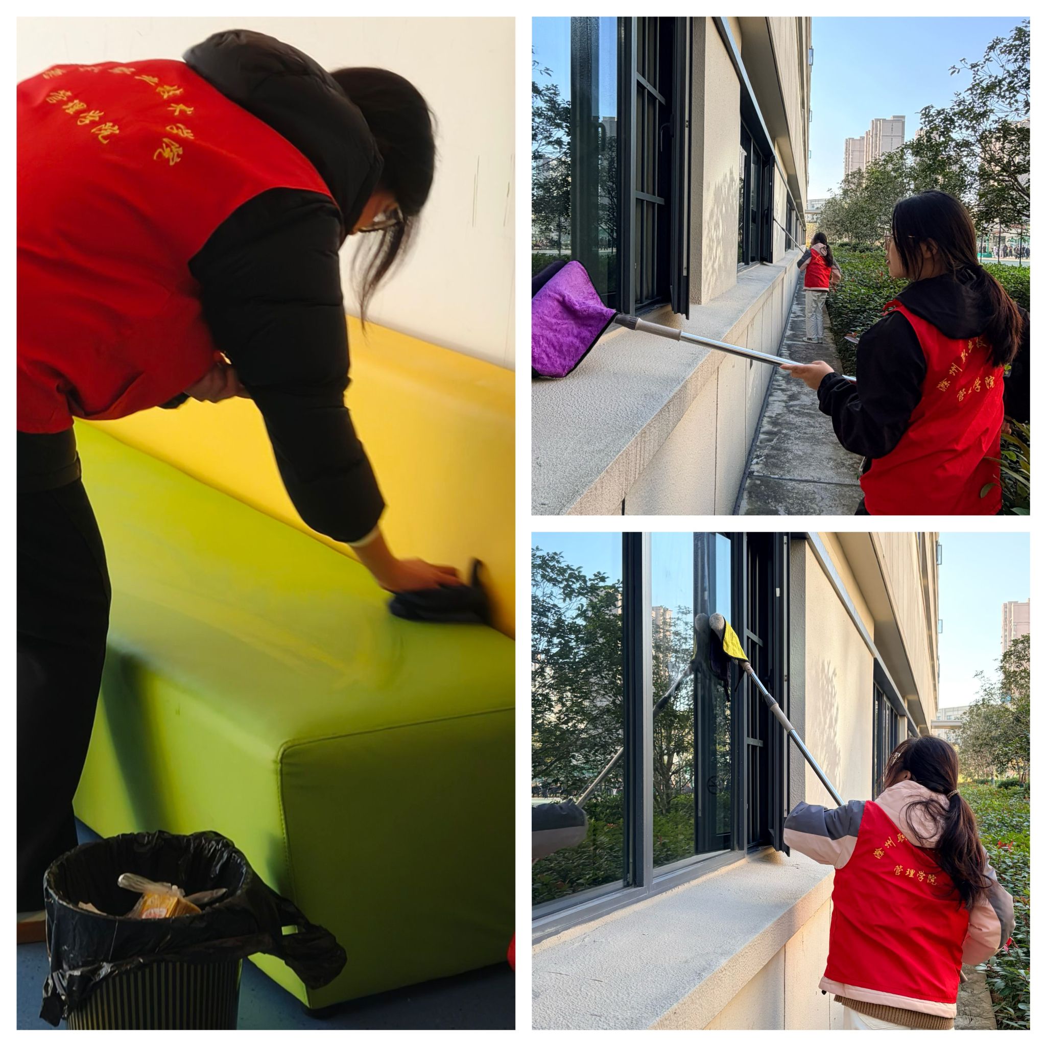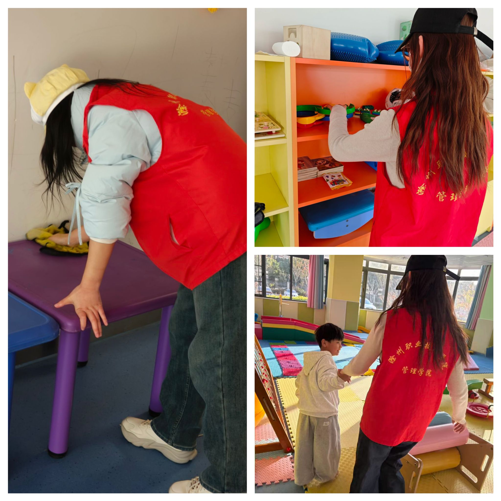 活动当日,志愿者们按时抵达场地,在医务工作人员的引导下,志愿者们快速了解工作任务与流程,明确分工并有序开展工作。一部分志愿者专注于孩子们日常活动训练室等区域的清理工作,对桌椅门窗等设施进行清理,为孩子们营造一个干净整洁的生活环境。另一部分志愿者全程陪伴在他们身旁,通过耐心交流与细致关怀,逐步拉近与孩子们之间的距离,构建信任、融洽的互动关系。最后,医务工作人员带领志愿者参观孩子们的日常生活区域,帮助志愿者们深入了解孤独症儿童的内心世界。