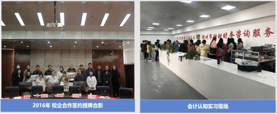 万象城官网一直坚持校企合作育人模式,充分挖掘合作企业潜力,校企共同参与实践教学基地的规划、设计与建设,建成了多个集教学、培训、实训、生产、竞赛于一体的校内外实践基地。形成了接近真实的会计职场氛围和适应教学需要的硬件条件,以企业提供真实案例进行教学,营造了“环境职场化、实训项目化、团队双师化、管理企业化”的真实场景,已基本形成会计职业技能与职业素养并重的实践教学体系。本专业现已建设校外生产性实习基地4个(滁州甜甜财务咨询服务有限公司、滁州会信财务咨询服务有限公司、滁州中衡会计事务所、安徽中晶税务师事务所),并与多家会计师事务所、税务师事务所及代理记账公司保持良好的专业合作关系。