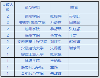 2 | 安徽科技学院 | 朱立燕 | 冯蕊蕊 | | |