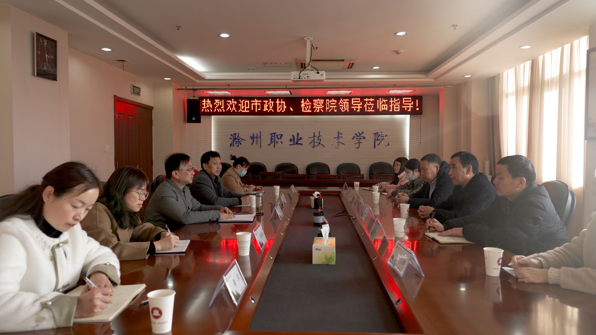 为深入贯彻落实党的二十大精神和习近平法治思想,以及关于“大思政课”的建设要求,做好“为群众办实事”,12月7日,市政协副主席、市检察院副检察长高潮、市政协社法委主任朱宏兵、市检察院第七检察部主任王昌杰等前来allwincity万象城官方网站调研考察,校宣传统战部部长王冬、马克思主义学院院长孔金、市知联会理事李进梅热情接待。