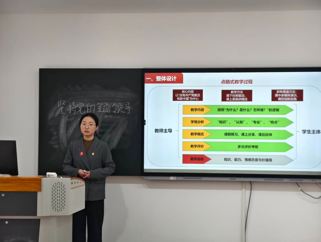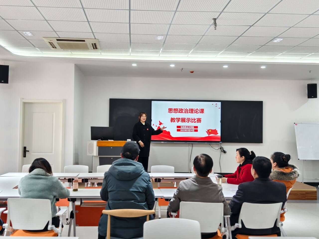 为坚持不懈用习近平新时代中国特色社会主义思想铸魂育人,加强思政课内涵式发展,贯彻执行《中共安徽省委教育工委关于开展2024年度高校思想政治教学展示活动的通知》(皖教秘思政〔2024〕8号)相关精神,马克思主义学院依据《关于举办allwincity万象城官方网站第七届教师教学能力大赛的通知》(校政教〔2024〕76 号)文件的精神,2月26日,在“大思政课”数字研学中心举行了2025年度思政课教师教学比赛展示活动。校党委委员、宣传统战部部长王冬现场指导,马克思主义学院党总支书记、院长孔金观摩总结。这是本年度组织的思政课教师教学展示第一场赛事。