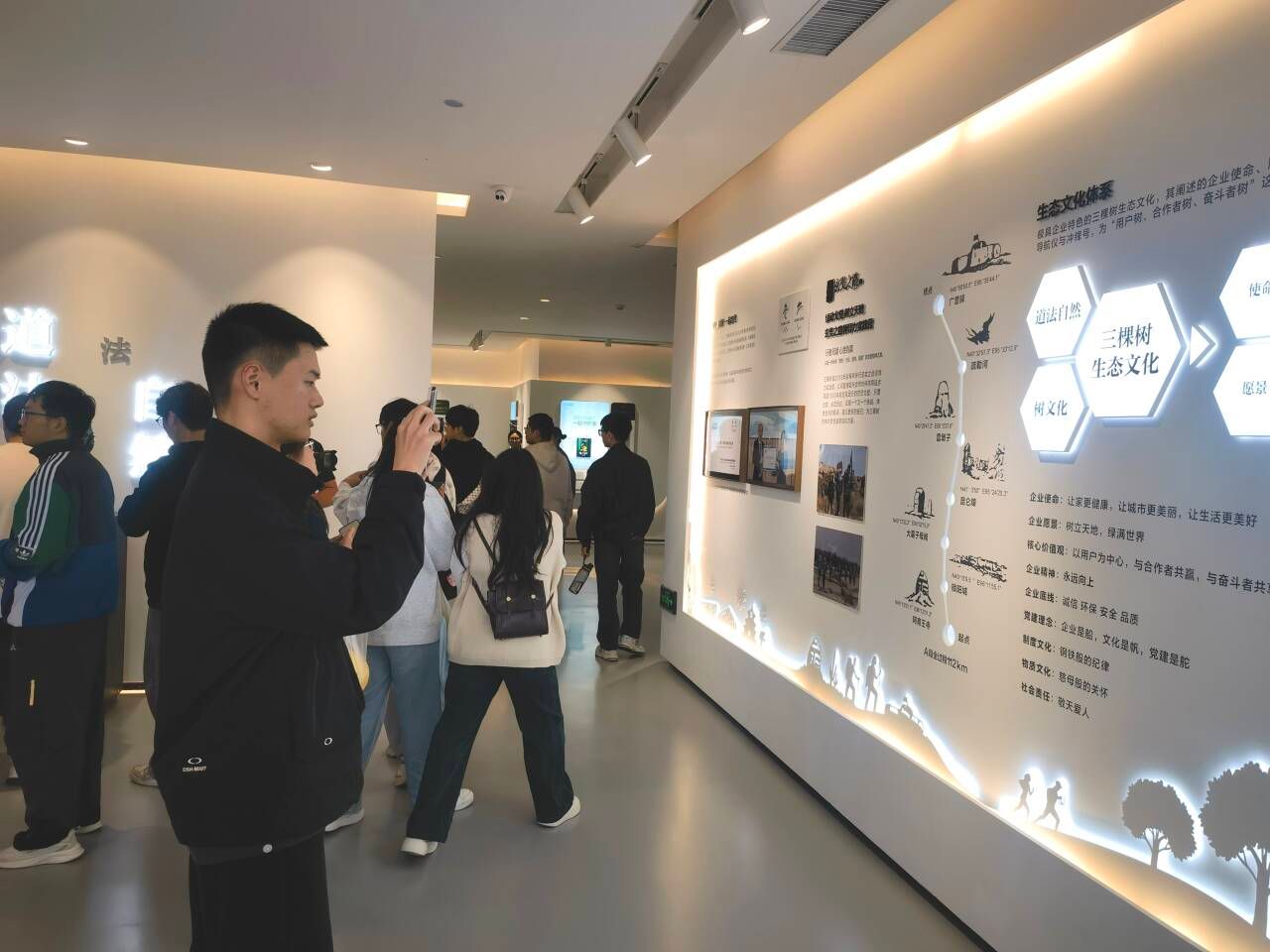 下午,师生一行来到安徽三棵树涂料有限公司。在企业讲解员的带领下,学生们参观了产品展示中心、智能化生产车间和企业党建服务中心,详细了解涂料生产的绿色工艺、环保理念以及行业前沿技术。讲解过程中,学生们结合自身专业知识积极提问,就涂料在道路桥梁防护、建筑装饰应用等方面的问题与工作人员深入交流。企业负责人结合行业发展现状,鼓励学生们要立足专业、勇于实践,将理论知识转化为服务社会的实际能力,为绿色建筑、交通强国建设贡献青春力量。