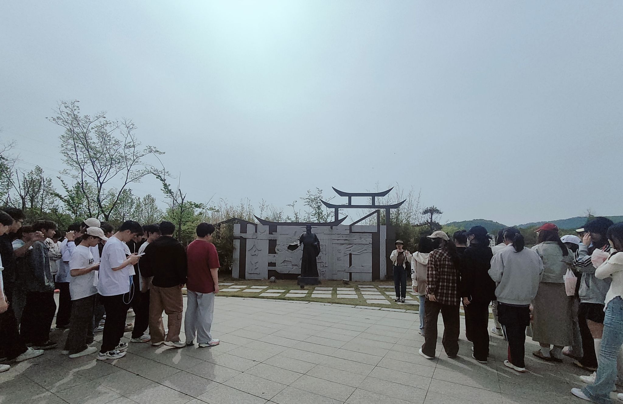 在滁州镜园,师生们沿着曲折的小道,聆听教师介绍浮雕墙上先贤们的廉政典故和镜园“廉莲”雕塑的文化寓意。并且结合镜园的历史背景和建筑特色,详细阐述了廉洁文化的内涵和意义,使学生们在欣赏美景的同时,深受廉洁思想的熏陶。