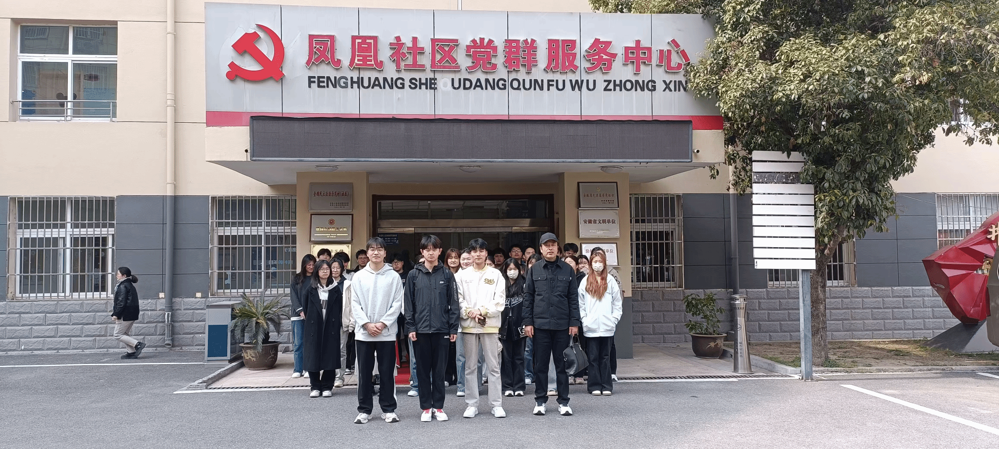 4月19日下午,天气晴朗,春色正好,马克思主义学院胡兆胜老师带着24级旅管二班52名大学生乘坐大巴来到了滁州市凤凰社区,受到了滁州市凤凰社区副书记李昌霞同志的热情接待。