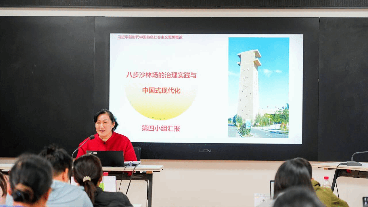 为期一周的研修内容丰富、形式多样:专家引领环节聆听了多场关于思政课内涵式高质量发展的高水平报告兰州大学宫长瑞教授讲授习近平生态文明思想在甘肃的生动实践”、国家教育行政学院余海波教授以长征精神、革命老区生态实践案例如何融入思政课进行探讨、复旦大学马克思主义学院张奇峰教授以“誓以白发换绿洲”——从“八步沙的绿色传奇”探究“四个伟大精神”进行深入讲解;实践浸润环节则组织学员实地考察八步沙的绿色传奇行走富民新村——解码移民安置与乡村振兴共生发展之道参观学习了携手共筑小康梦——定西扶贫的壮丽篇章等实践教育基地,在绿水青山间感悟思想伟力“教学示范”环节36位参训教师分成四组,每组选出教师按不同课程结合实践教学环节进行实践教学案例融入思想课教学展示,张家莉老师作为第四组学员代表以“八步沙林场的治理实践与中国式现代化”以向与会专家学员进行了精彩的教学展示。