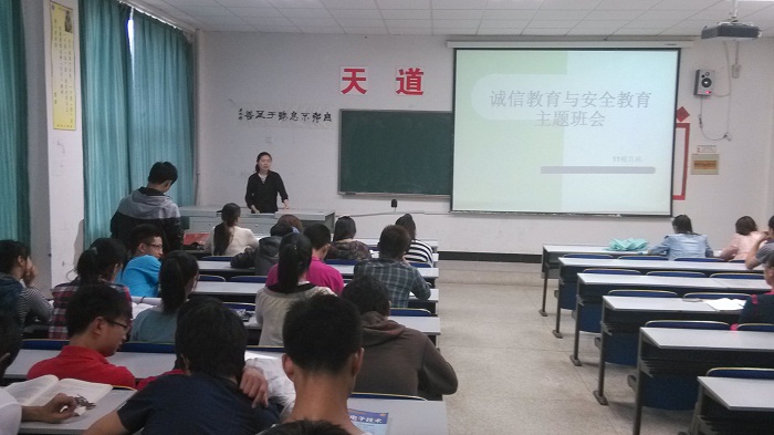 为了增强同学们的诚信意识与安全意识,强化校园安全教育,大力营造校园安全文化氛围,11级模具班于2013年6月8日下午在5113教室召开主题班会,由辅导员茆老师主持。