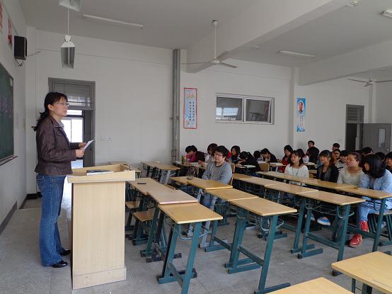 王老师给大家列举了近期各大高校发生的恶性事件,提醒大家提高自我保护意识,在学习知识的同时也要注意自身心理素质的培养,要尊重自己以及他人的生命。鼓励大家遇到解决不了的问题及时向辅导员寻求帮助,理智控制自己的情绪,还要注意和父母保持密切联系。对于即将到来的“五一”假期,王老师分别从防火、防盗、防爆、防溺水、防交通事故、防震、防禽流感等多个方面对大家进行了安全教育。在会议上不断地给大家提供正能量,会场气氛异常活跃,接着同学们纷纷和老师共享了近期自己学习、生活上的一些情况。
