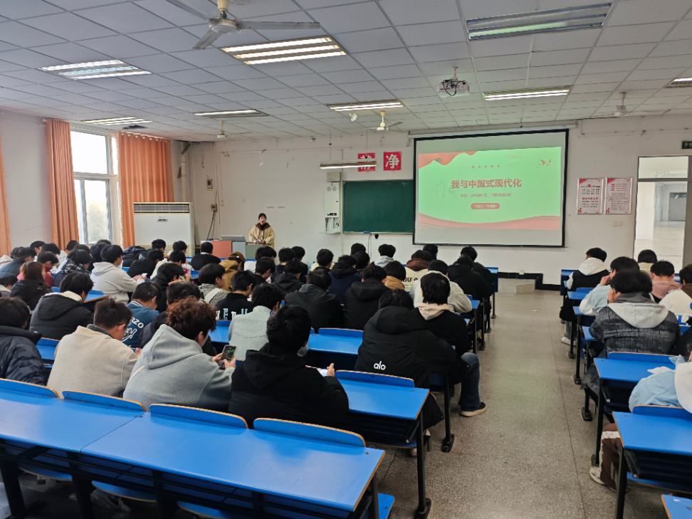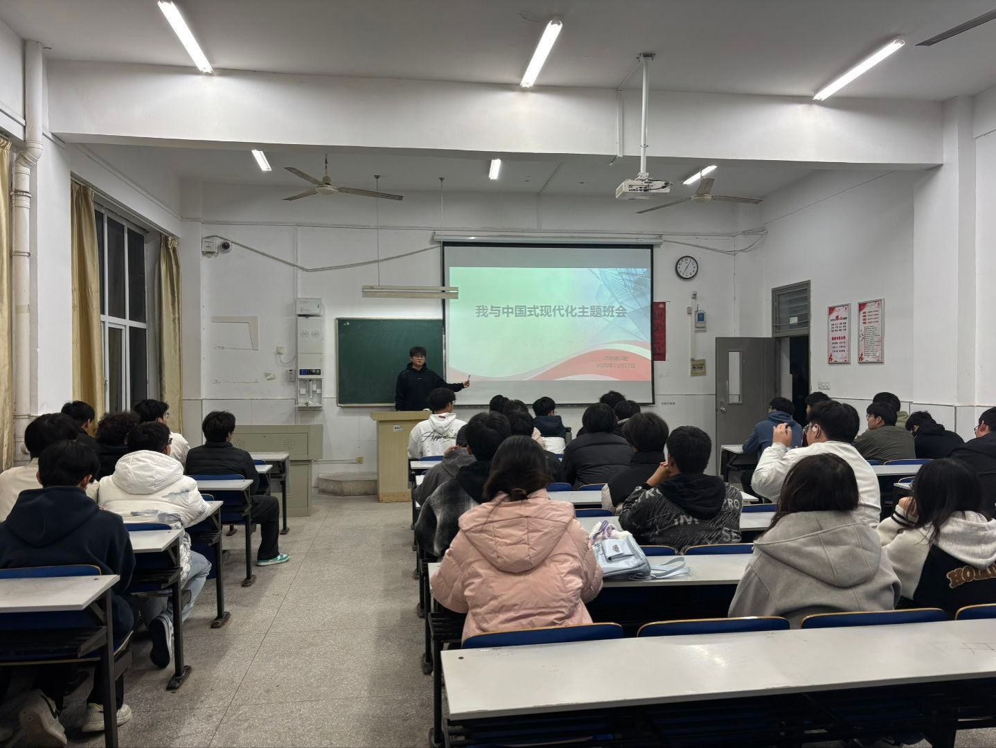 各班围绕“中国式现代化”主题,结合专业特色设计了丰富多样的活动形式。辅导员通过PPT讲解、观看视频等方式,向学生系统介绍中国式现代化的五大特征、本质要求和重大意义,并结合机械制造、汽车工程等专业领域的发展案例,生动阐释“科技自立自强”“人与自然和谐共生”等理念在行业中的实践。