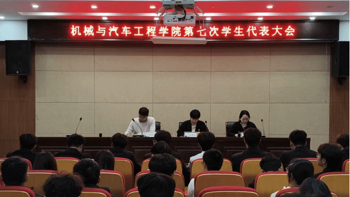 2025年11月19日,机械与汽车工程学院第七次学生代表大会在南阶205圆满召开。学院党总支书记吴佳佳、团总支书记倪子旭、辅导员代表刘旭冉老师及全体学生代表出席会议,会议由张华伟主持。
