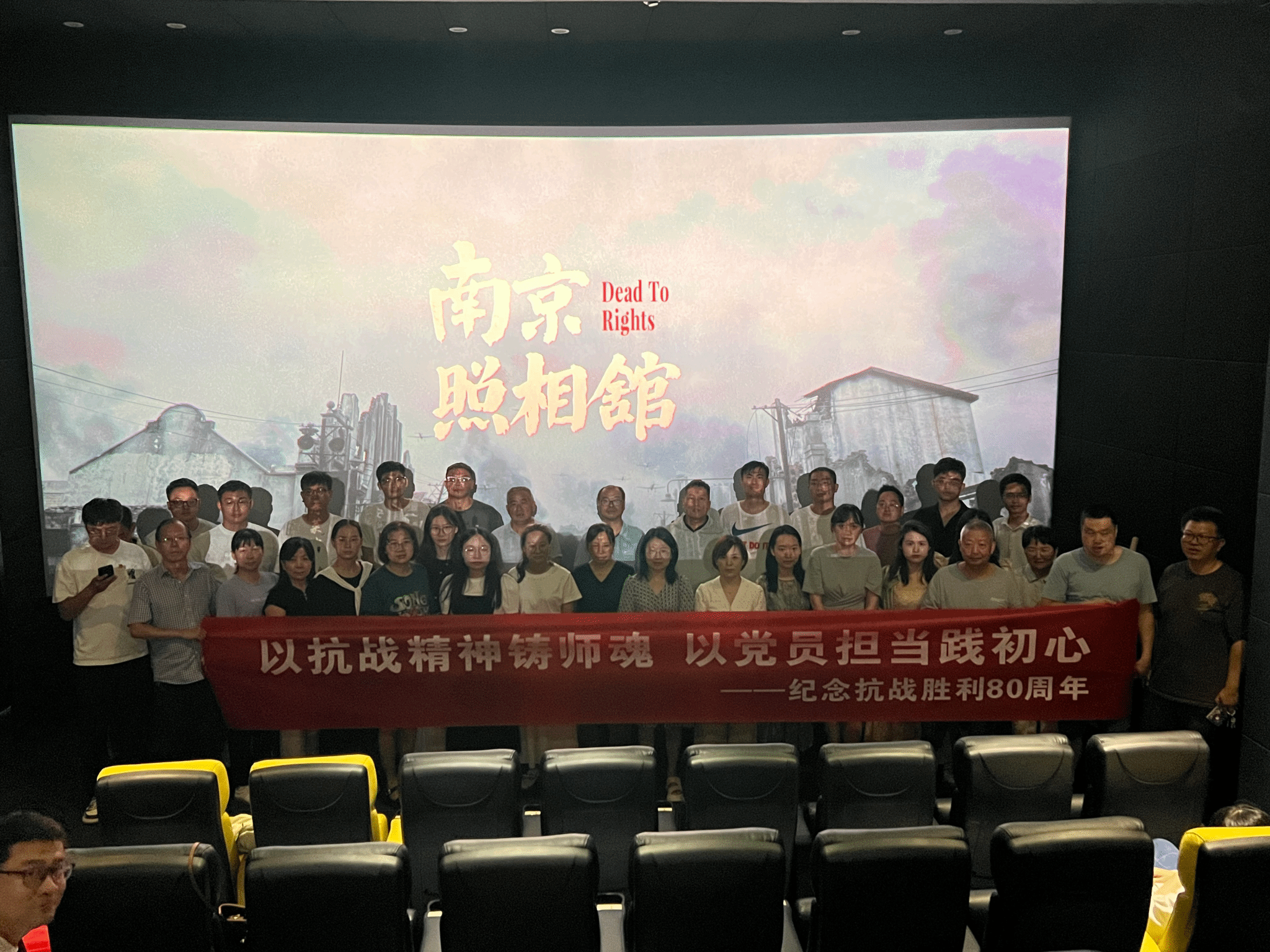 为深切缅怀革命先烈,弘扬伟大抗战精神,进一步加强党员干部理想信念教育,激发爱国热情和奋斗精神,在中国人民抗日战争暨世界反法西斯战争胜利80周年纪念日来临之际,8月27日,机械与汽车工程学院党总支组织全体教职工党员集中观看了抗战题材主题影片《南京照相馆》。