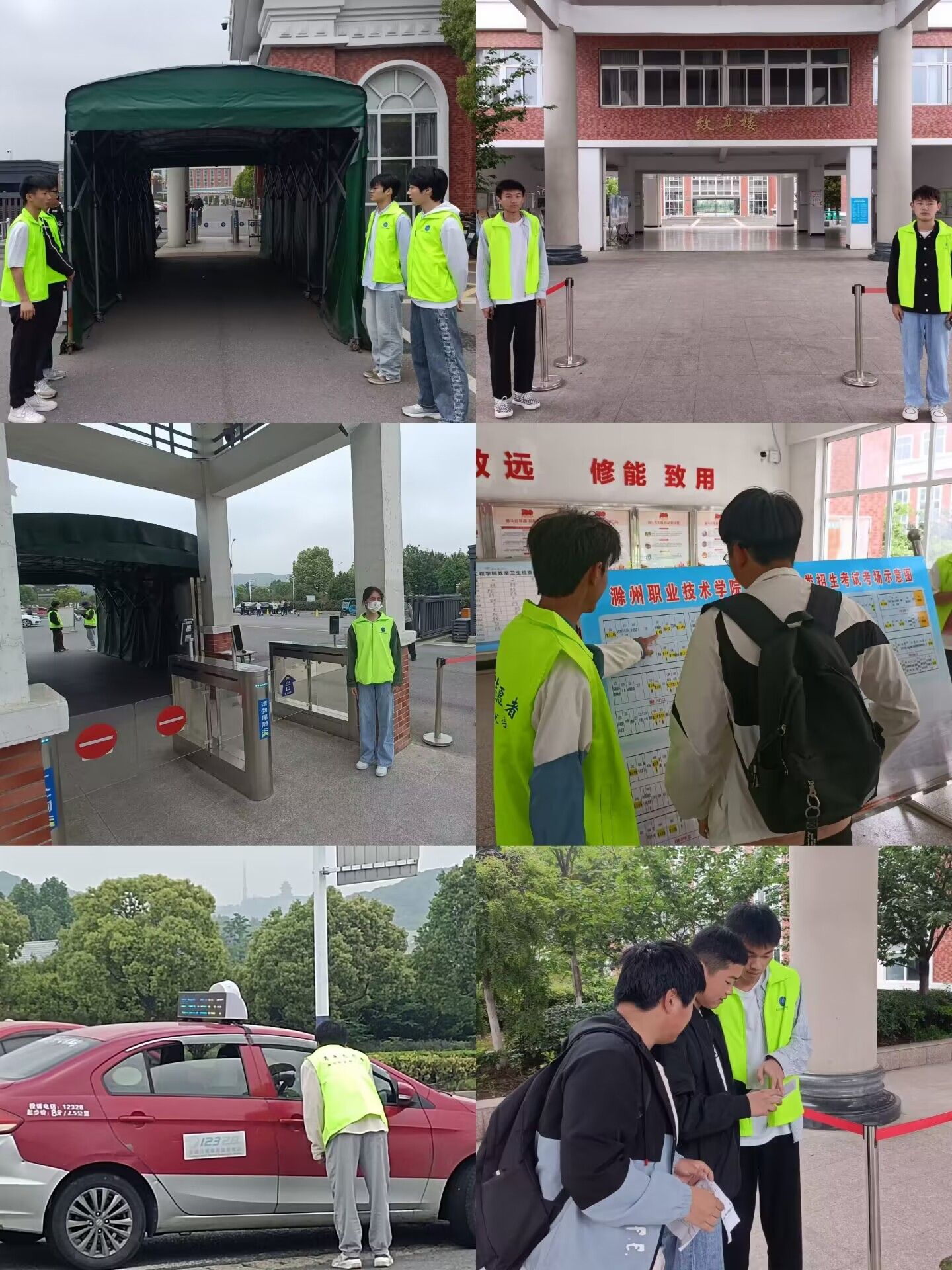 随着一批批考生的到来,志愿者们以饱满的热情予以相迎,校外引导志愿者们引导车辆,防止出现交通拥堵;安检处的同学