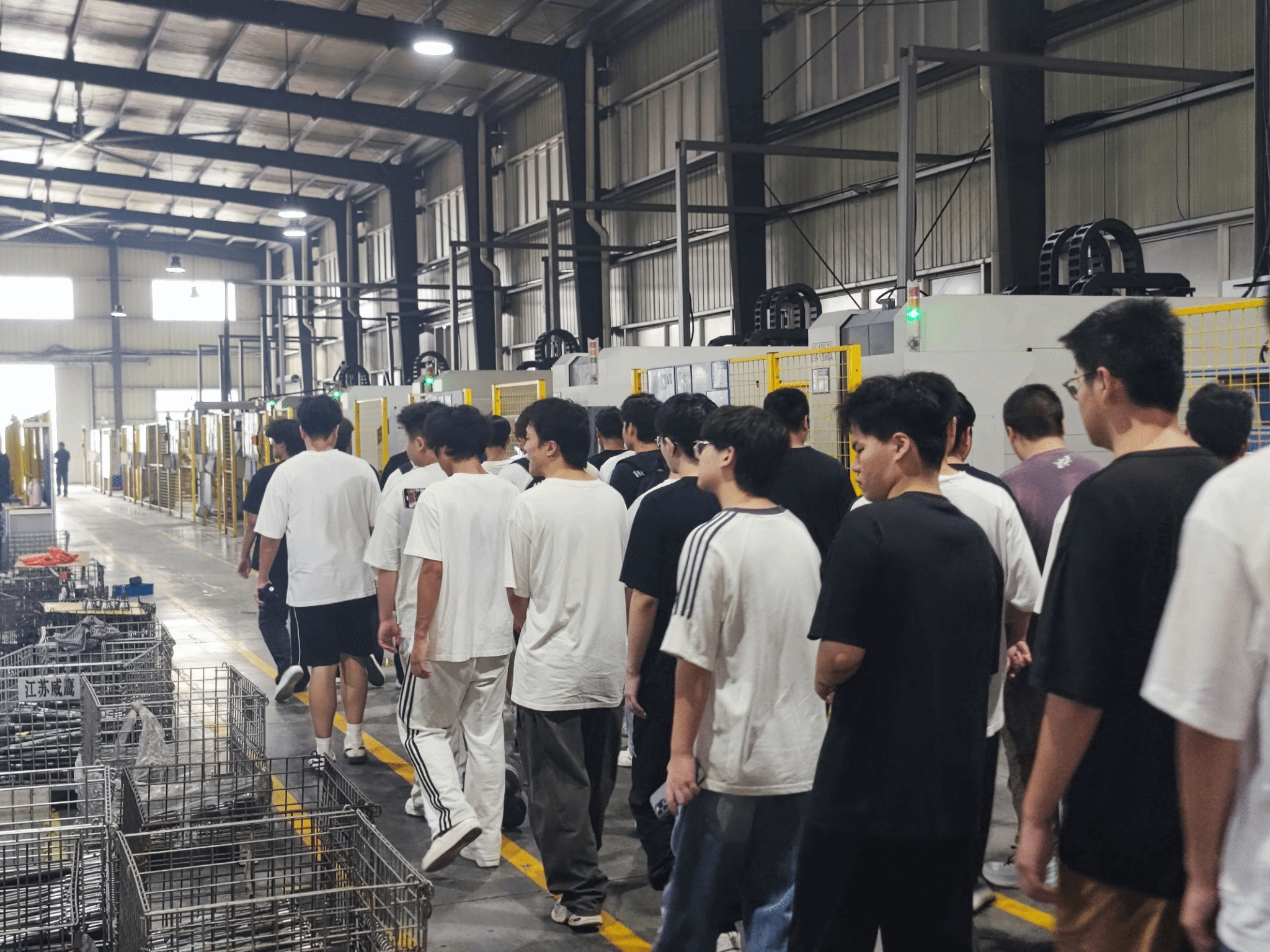 在实地参观过程中,企业工程师与技术骨干担任 “临时导师”,带领新生走进汽车零部件生产车间、研发中心,详细讲解生产线的运作流程、前沿技术的应用场景以及行业发展趋势。从精密的机械臂操作到智能化的生产线,从产品的研发设计到生产制造,新生们近距离感受着现代企业的生产模式与技术革新,不时驻足观察、认真记录。