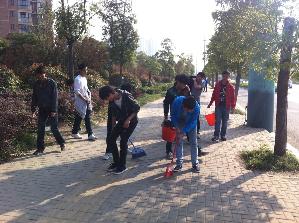 2013年103日下午,汽车工程系吴佳佳老师带领,12级五十余名青年志愿者对花园路路口至龙蟠大道道路东侧进行清扫。