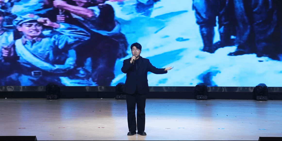 两位老师从作品情感内核出发,引导学生深入领会对人民的深情礼赞,还在朗诵技巧、情感表达等方面给予细致指导,助力其精准把握作品精髓。进入拍摄环节,为呈现最佳效果,团队反复挑选拍摄场地,力求背景与作品氛围相契合。拍摄过程中,从站位、眼神,到每一句台词的节奏、语气,老师们都严格把关,一遍遍地调整、打磨,力求将《人民万岁》的精神内涵通过朗诵淋漓尽致地展现出来。
