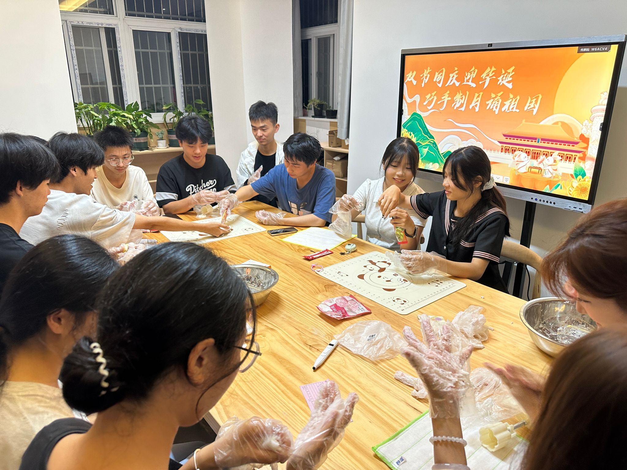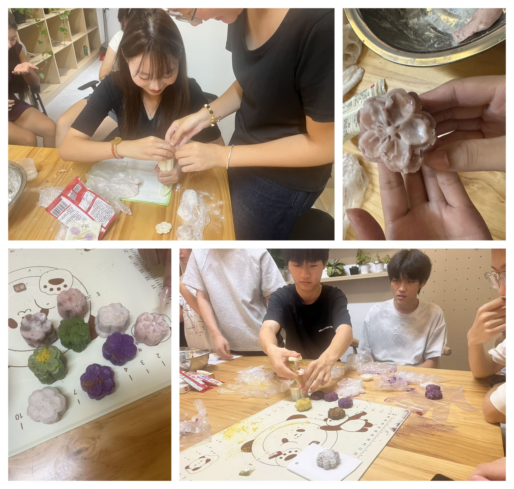 10月6日晚,“丰乐驿站”创客工坊里,学院党总支组织留校学生开展自制月饼活动。学院提前准备了面粉、豆沙、莲蓉、模具、面盆、手套等食材与工具,食品专业戴缘缘老师给予精心指导,介绍月饼制作的食材配比、工艺原理及相关安全知识,指导同学们分组协作:揉面团、包馅料、压模具、印花纹,用灵巧的双手创造出一个个造型规整、纹路清晰的月饼。大家一边制作、品尝月饼,一边分享节日习俗与感受,现场欢声笑语不断,浓厚的节日氛围与爱国情感感染在场的每一个人。