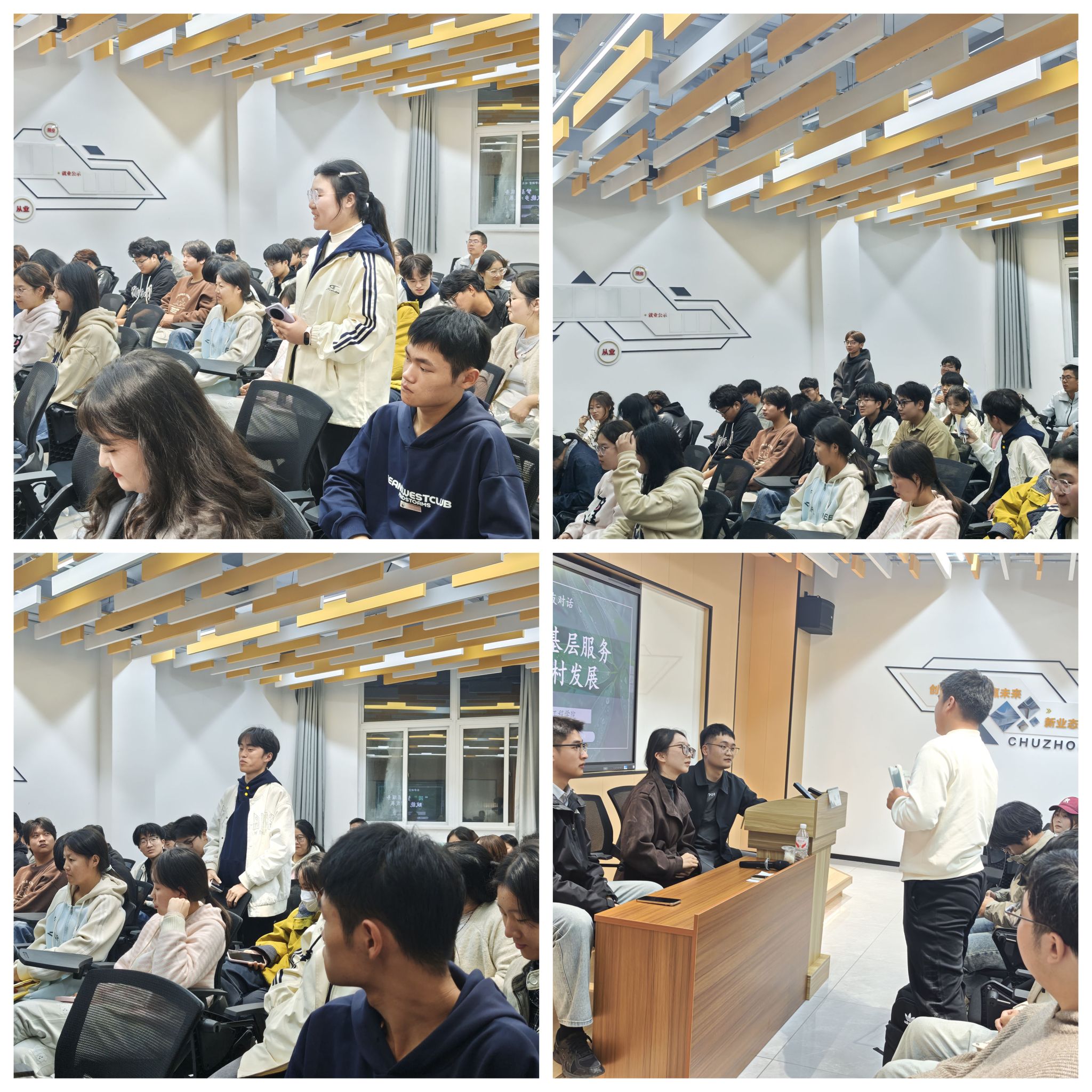 互动环节,在校同学围绕大学生涯规划、如何处理工作与学习、基层工作适应性等问题踊跃提问。阮博学长以幽默的语言、机智的反应一一解答,现场不时响起掌声和欢笑声。他鼓励同学们珍惜大学时光,在学好专业知识的同时,积极参与实践,不断提升综合素质和能力。