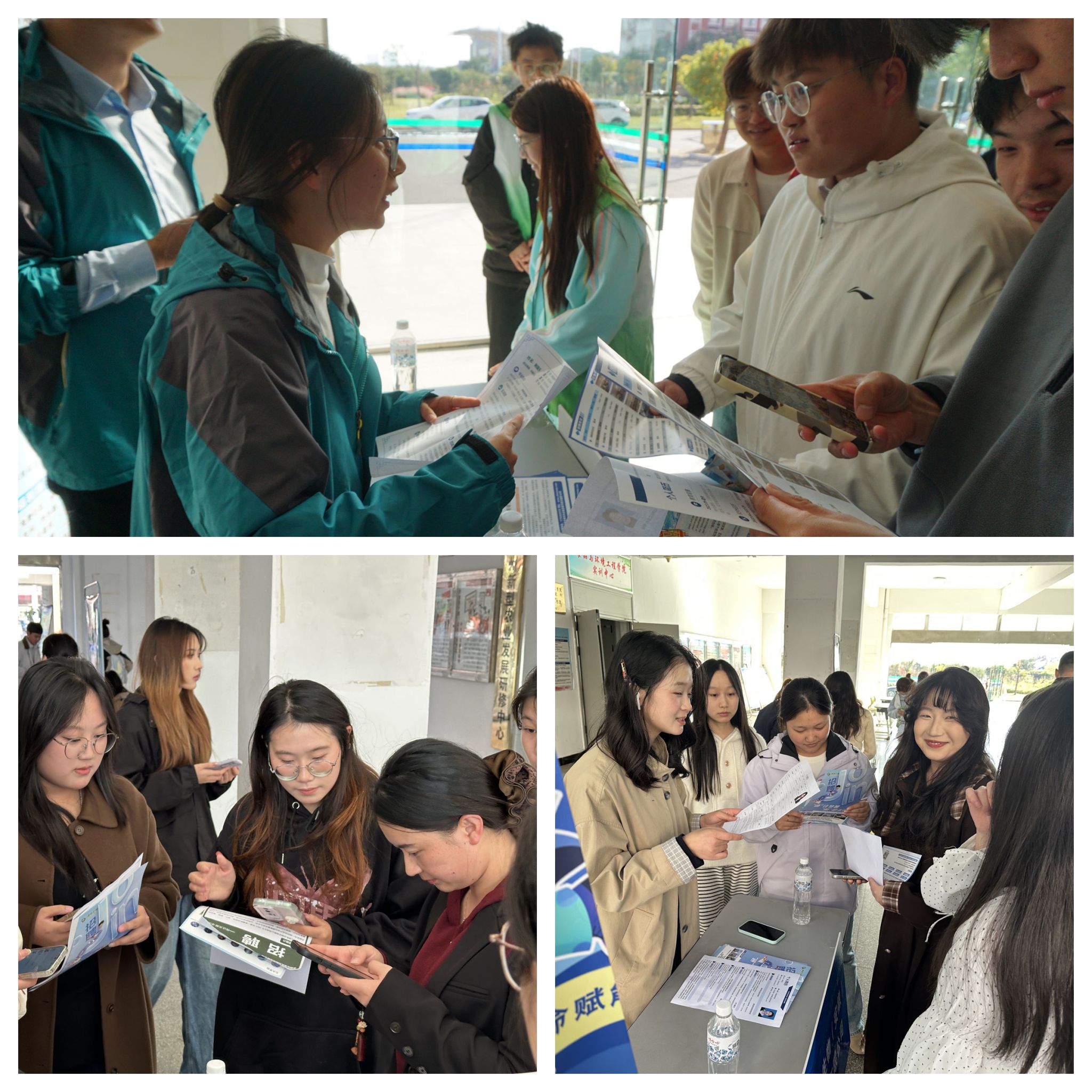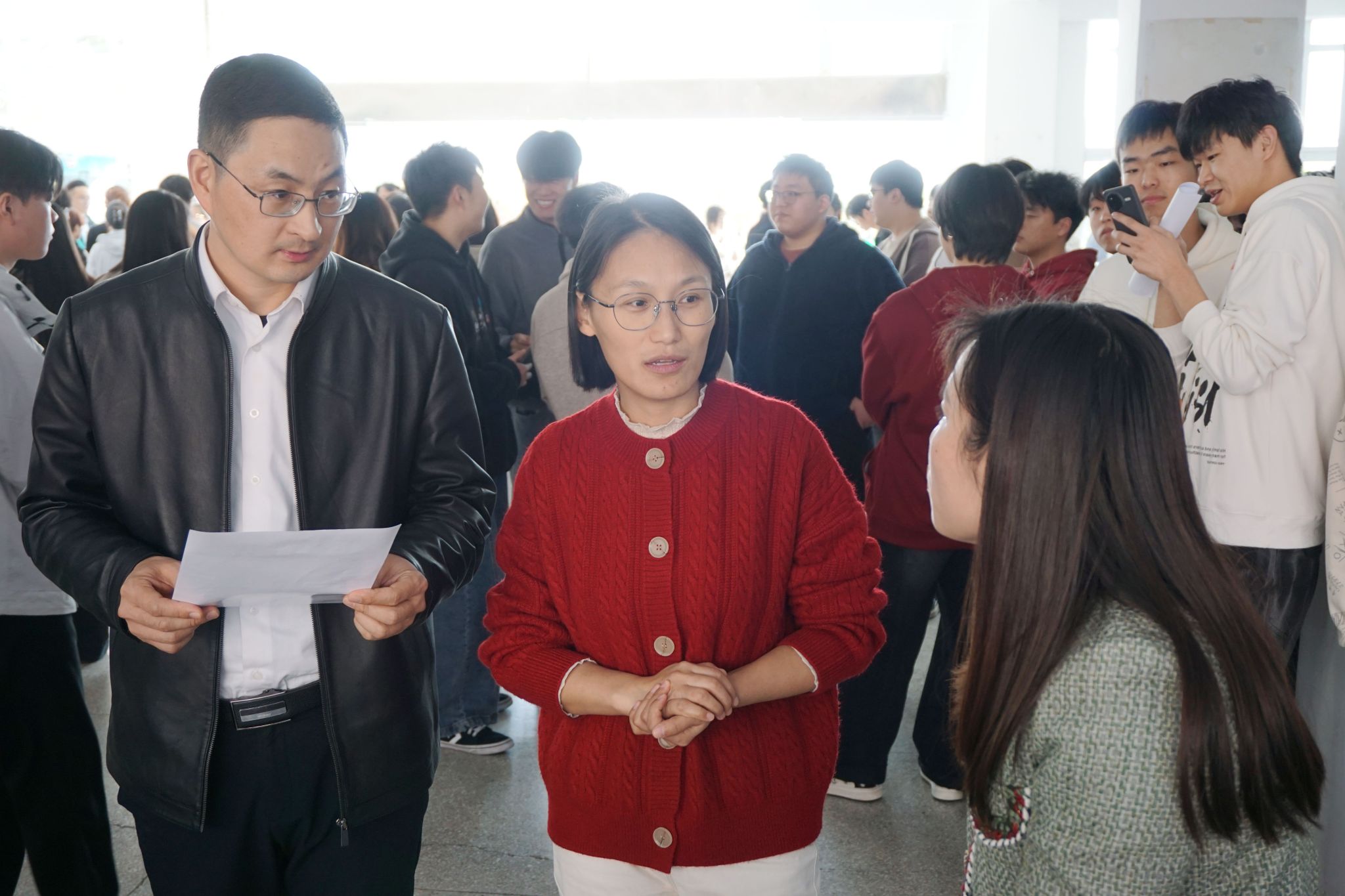 招聘会现场气氛热烈,秩序井然。学院党总支书记张功会、副院长孟飞携专业带头人陈静、毕业班辅导员施明远等依次走访各企业,与企业来人进行沟通交流,并指导学生应聘、投递简历。