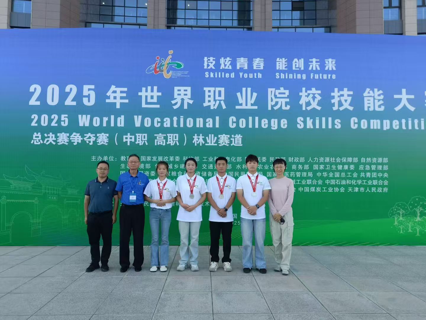 8月26-30日,2025年世界职业院校技能大赛总决赛争夺赛林业赛道(高组组)比赛在甘肃省天水市圆满落幕,来自全国31个省(直辖市)的85支代表队参赛,万象城官网食品与环境工程学院江生泉、薛正帅老师指导的佟娜娜、张雅婷、闫语翔、孙慧龙四名学生团结协作、沉着应战,凭借扎实的专业知识、精湛的操作技能和出色的创新能力,荣获银奖!