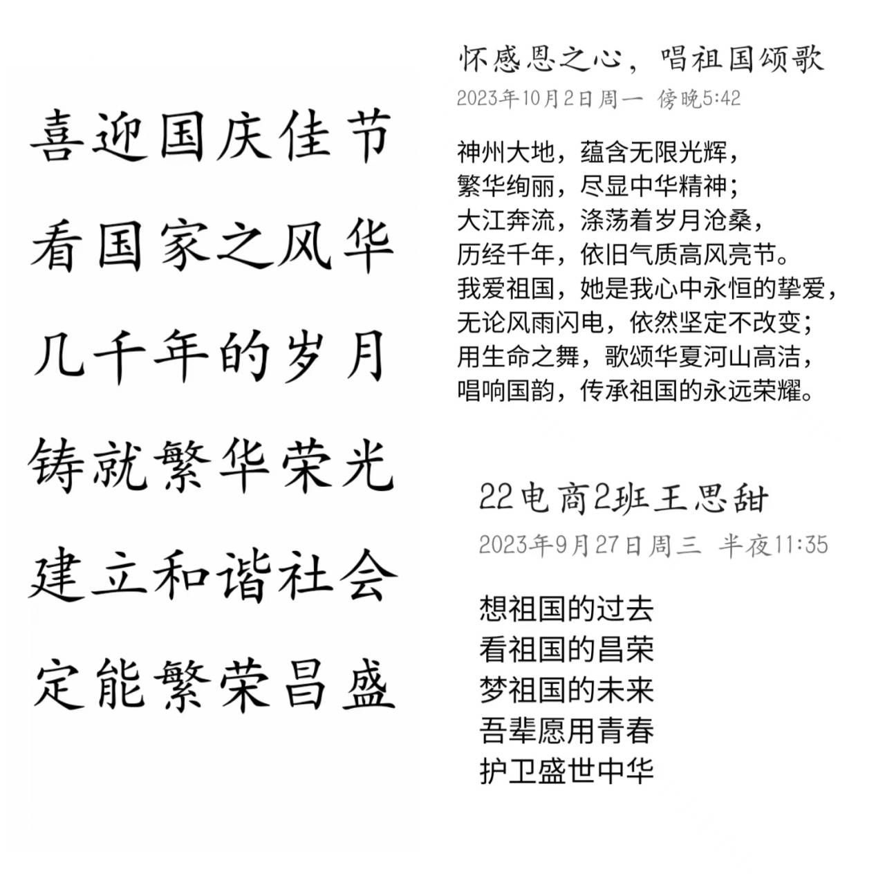 为加强爱国主义教育,增强学生爱国热情,培养学生良好的爱国情操。在国庆节到来之际,商学院学生会于10月5日开展“怀感恩之心,唱祖国颂歌”主题诗歌创作线上比赛。