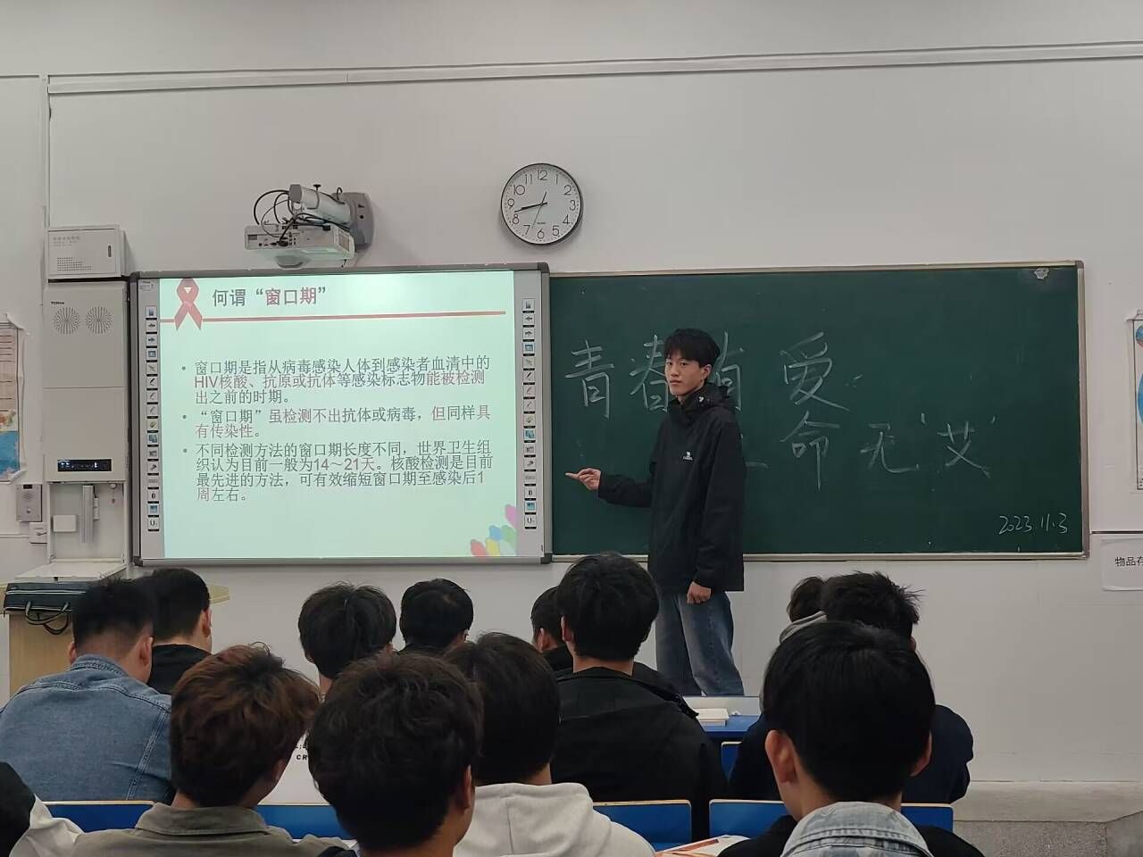 通过这次防艾主题宣讲活动,不仅普及了艾滋病的相关知识,提高了同学们识艾防艾的能力,同时进一步推动了校园艾滋病防治宣传工作的开展,形成共担防艾责任,共享健康权益的良好氛围。