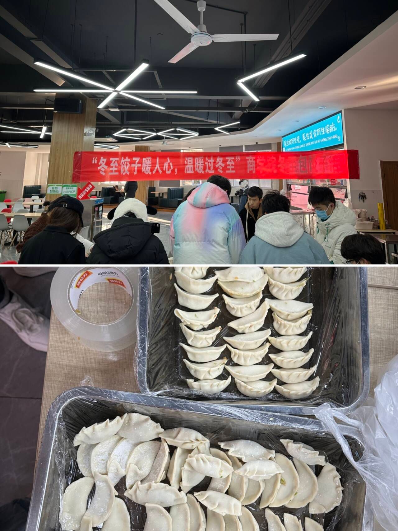 为了丰富学生的校园文化生活,让同学们感受到冬季的温暖,营造和谐温馨的集体氛围。商学院学生会于12月22日在食堂1楼举办“情暖冬至,饺香飘逸”冬至包饺子活动。