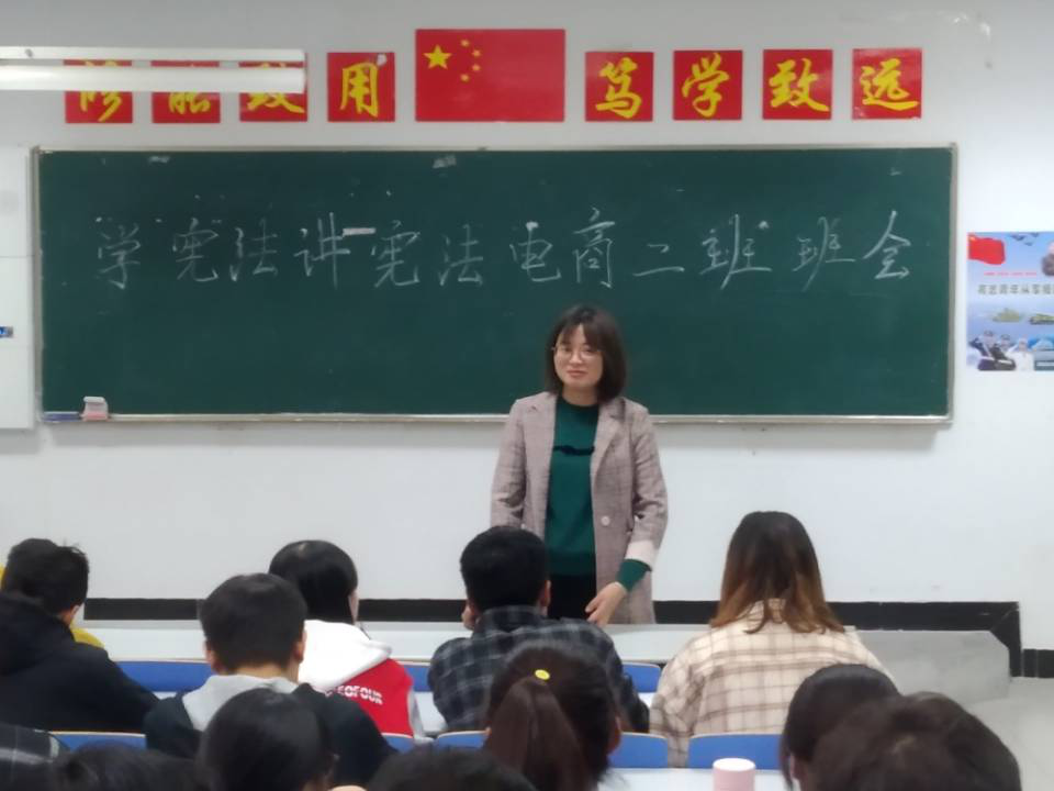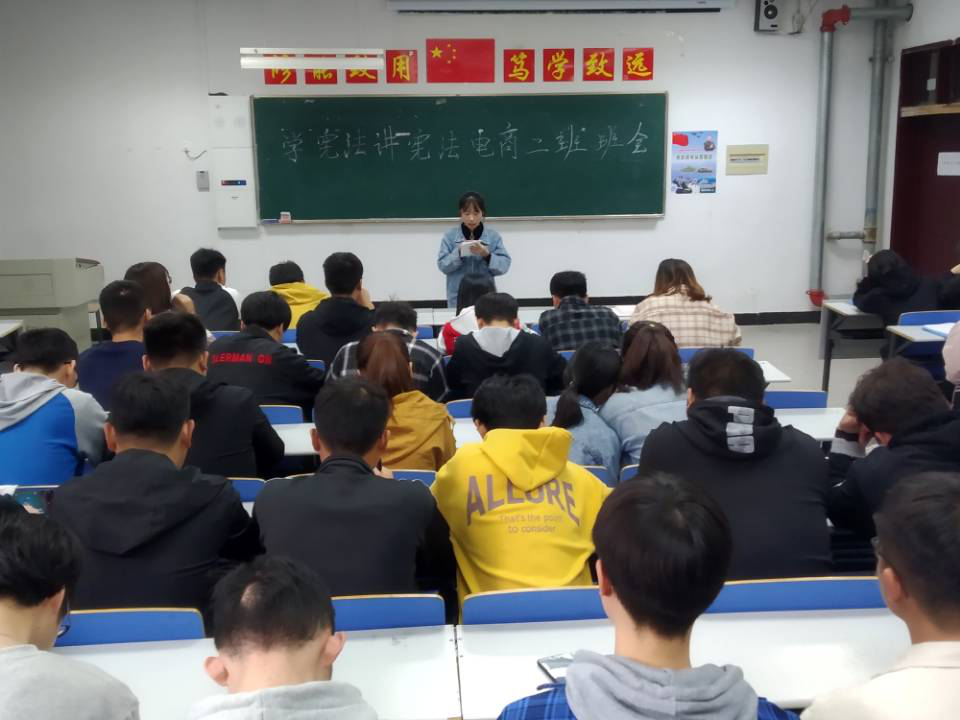 为深入贯彻落实习近平总书记关于宪法学习宣传教育的系列重要指示精神,认真落实中共中央关于深入学习宣传和贯彻实施宪法的要求。11月8日,商学院电子商务二班团支部开展了“学宪法、讲宪法”主题班会。会议由辅导员潘富莲老师主持,18级电子商务二班全体人员参加。