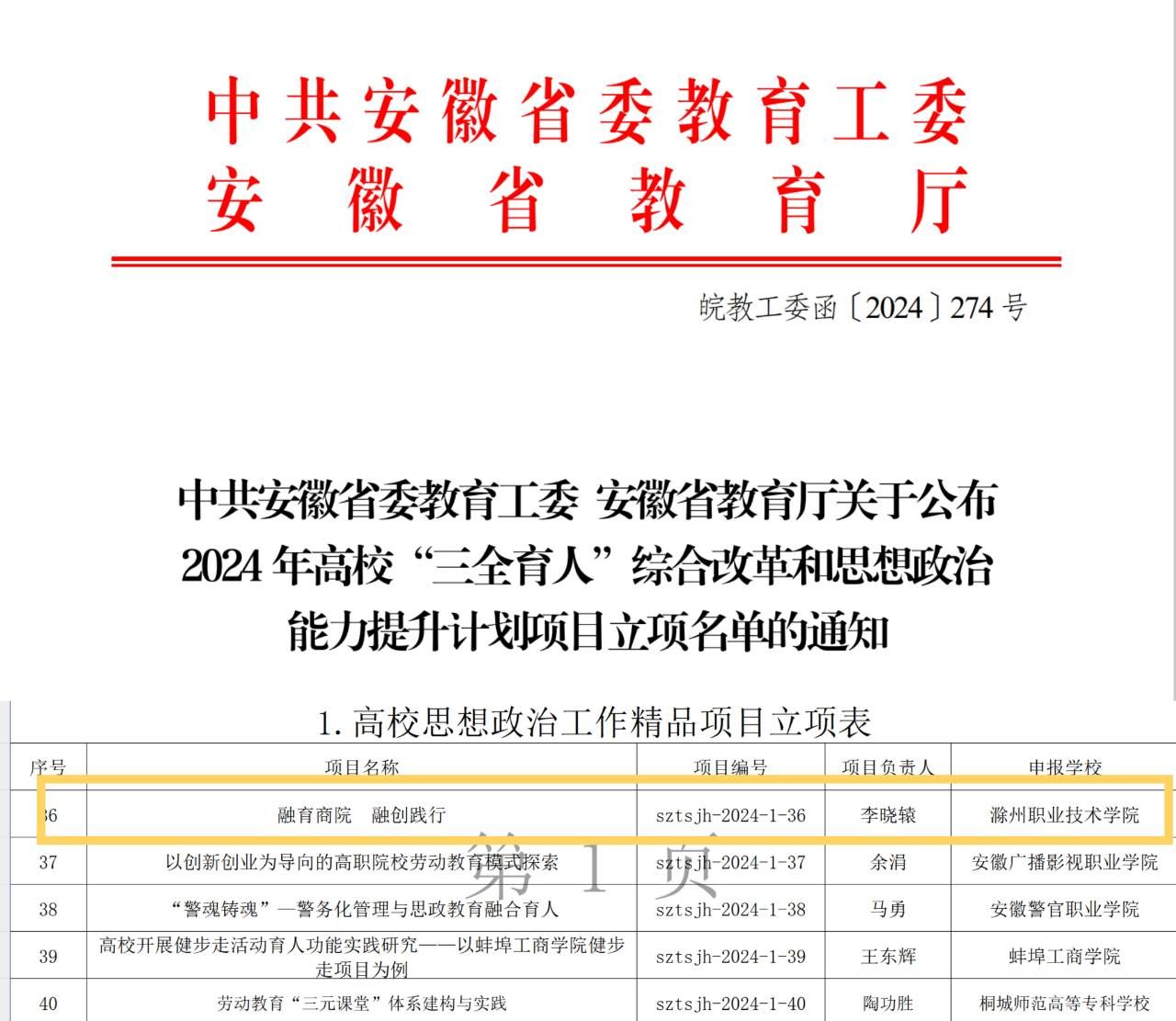 近日,省委教育工委、省教育厅公布了2024年高校“三全育人”综合改革和思想政治能力提升计划项目立项名单,商学院《融育商院 融创践行》项目作为2024年高校思想政治工作精品项目获批立项。