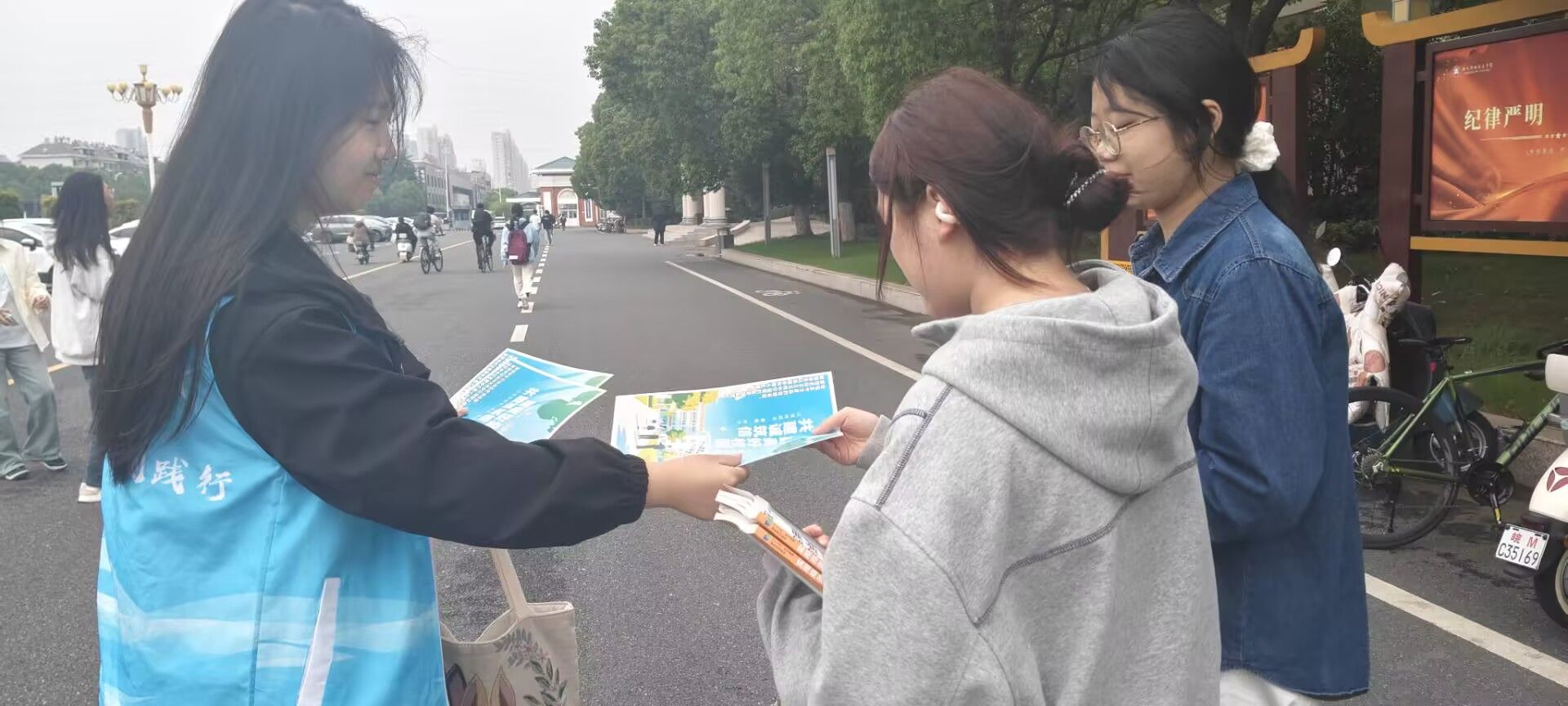 活动当日,我班同学身着志愿服,活跃在教学楼下的学校大道。我们通过发放宣传单、现场讲解等方式,向学生普及诚信知识,涵盖学术诚信、人际交往诚信、生活中的诚信行为等多个方面。班级同学热情耐心,积极互动。本次志愿活动展现的主题是:诚信是中华民族的传统美德,也是校园文化建设的重要组成部分。希望通过此次活动,能让诚信观念更加深入人心,引导学生从自身做起,践行诚信行为。