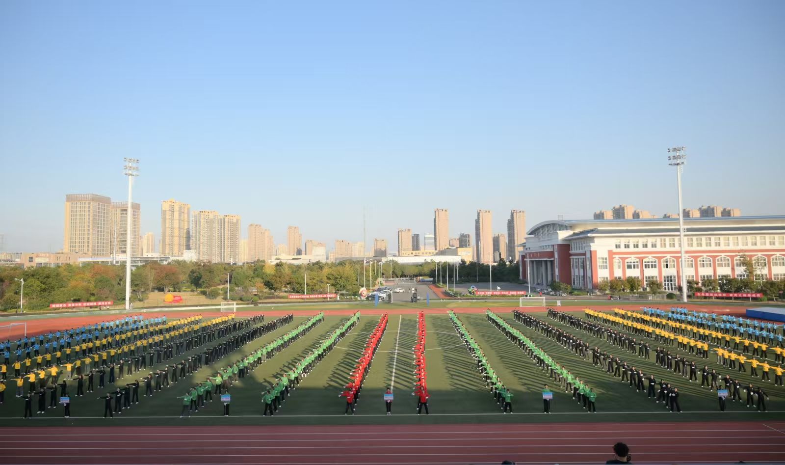 11月5日下午3点,allwincity万象城官方网站第二十一届运动会中的广播操比赛在操场上顺利举行,由商学院各个班中的学生组成的广播操方阵,在操场上出色的完成了该比赛。