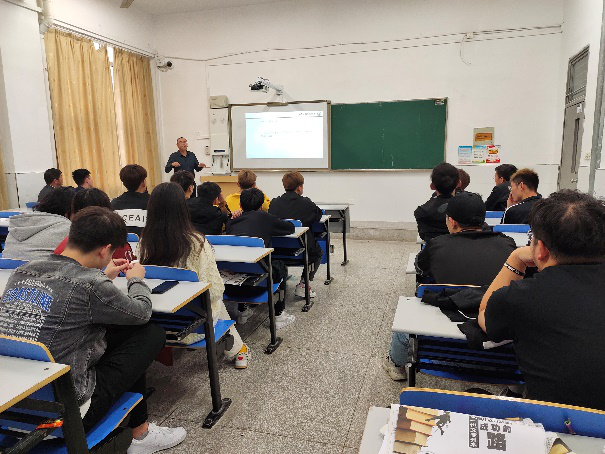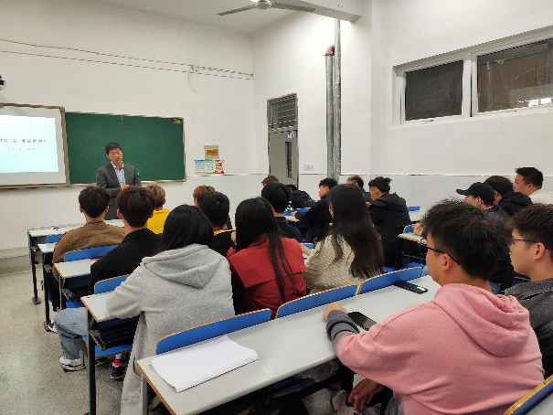 首先由金鹏常培伟老师发言,幽默风趣的开场白加上暖心的问候让原本严肃班级氛围立刻变得活跃起来。常老师详细说明了此次课程的意义和目的。随后,金鹏学院负责人徐德明老师就同学们所学的专业进行了延伸性分析并拓展了相关知识,具有分量的内容使每位同学对自己所学专业有了新的认识,新的思考。