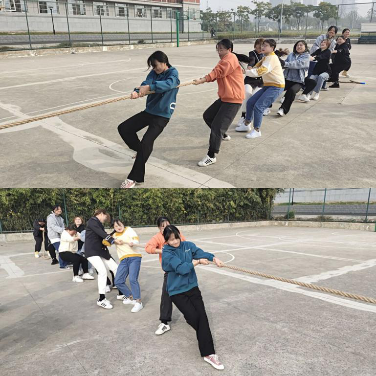 迎着明媚的阳光,大家在比作为赛场地的篮球场上展开了激烈的争夺。随着哨声响起,队友们喊着“一、二,一、二”的口号来为各自的队伍控制比赛节奏,前来助威加油的同学越来越多,场面也越来越激烈。赛场上的欢呼声、呐喊声此起彼伏,选手们也是卯足了劲将绳子往后拉。经过激烈的角逐,最终我院女子拔河队在比赛中取得了一等奖的优异成绩。