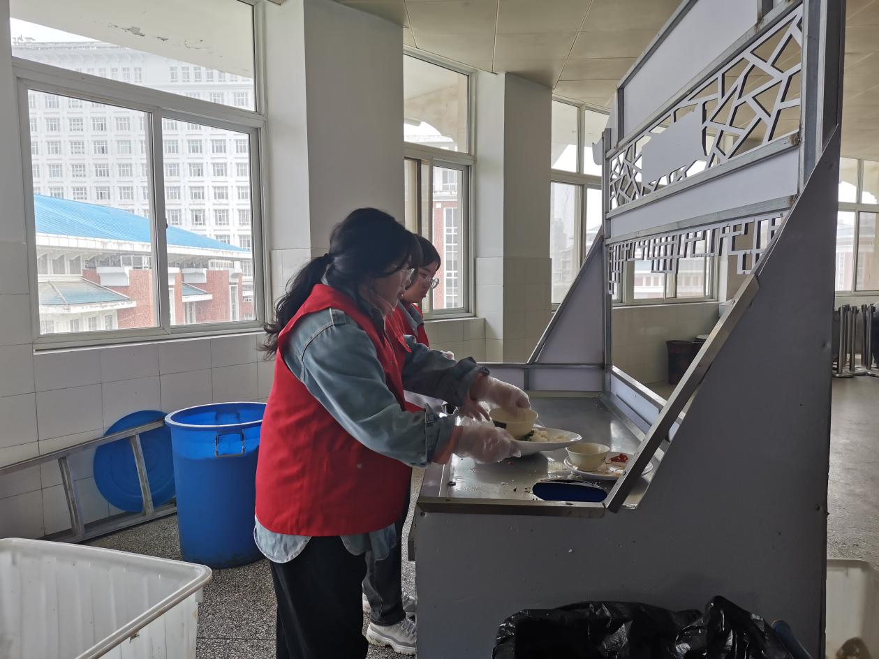 商学院19电子商务3班团支部组织开展“志愿者献爱心,食堂收餐盘”的自愿奉献活动