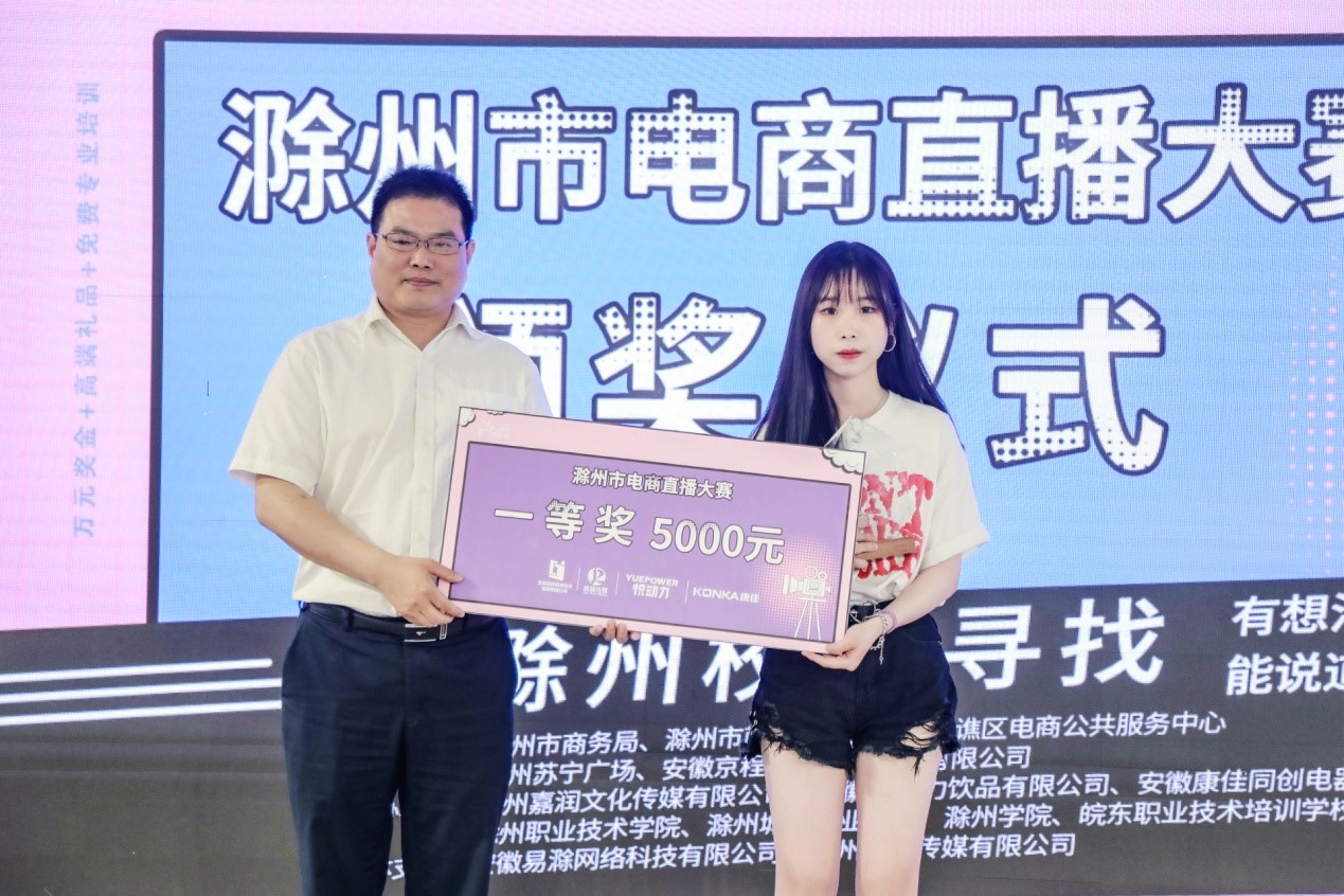 本次大赛由滁州市商务局、滁州市南谯区商务局主办,滁州苏宁广场、安徽京程信息技术发展有限公司、南谯区电商公共服务中心承办,自大赛启动以来,共有来自滁州3所高校的600余名大学生报赛参赛,45支团队进入复赛。历经一系列激烈角逐,共有6支优秀团队脱颖而出进入决赛环节,呈现了一场直播带货的实战“盛宴”,万象城官网学生在众多参赛队伍中脱颖而出。