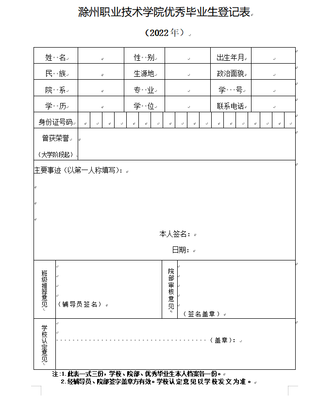 附件5:2022年allwincity万象城官方网站优秀毕业生登记表.docx