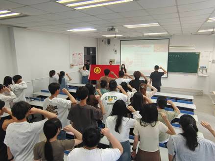 为了进一步深化我院青年学子思想政治引领,加强学院共青团队伍建设,增强团员进取精神,牢固树立新团员对共青团组织的荣誉感、归属感,引导团员青年厚植爱党、爱国、爱社会主义情感,让红色基因代代相传。商学院团总支于5月14日在致真楼1116教室举办新团员入团宣誓仪式暨老团员重温誓词活动。