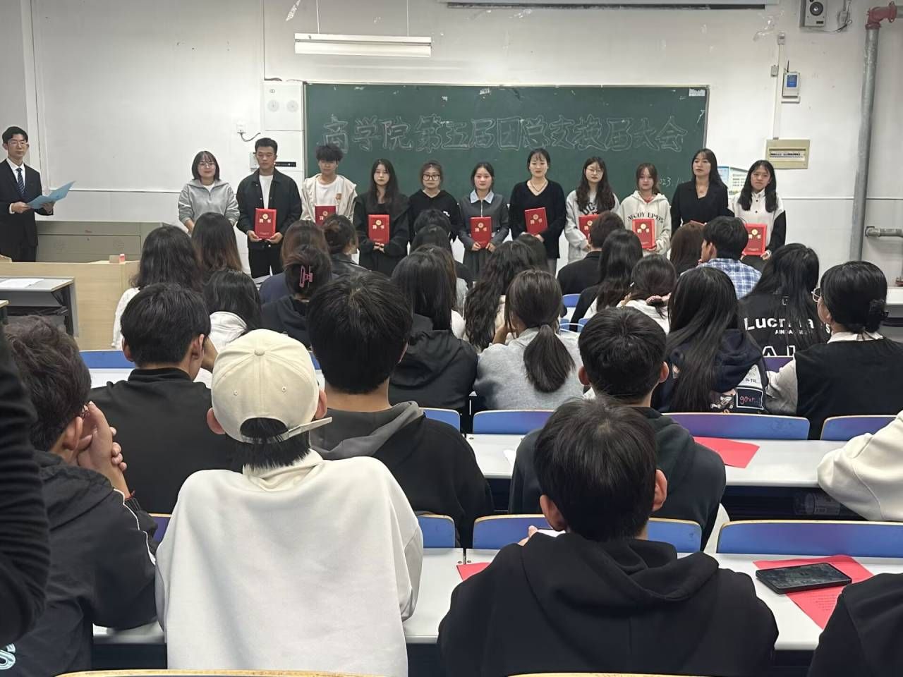 为加强我院团学组织协调,增强集体凝聚力和向心力,顺利完成本次工作的交接,商学院团总支于10月25日在致真楼1119教室举行第五届换届大会。团总支指导老师朱芡芡出席本次大会,会议由团总支组织部余政东主持。