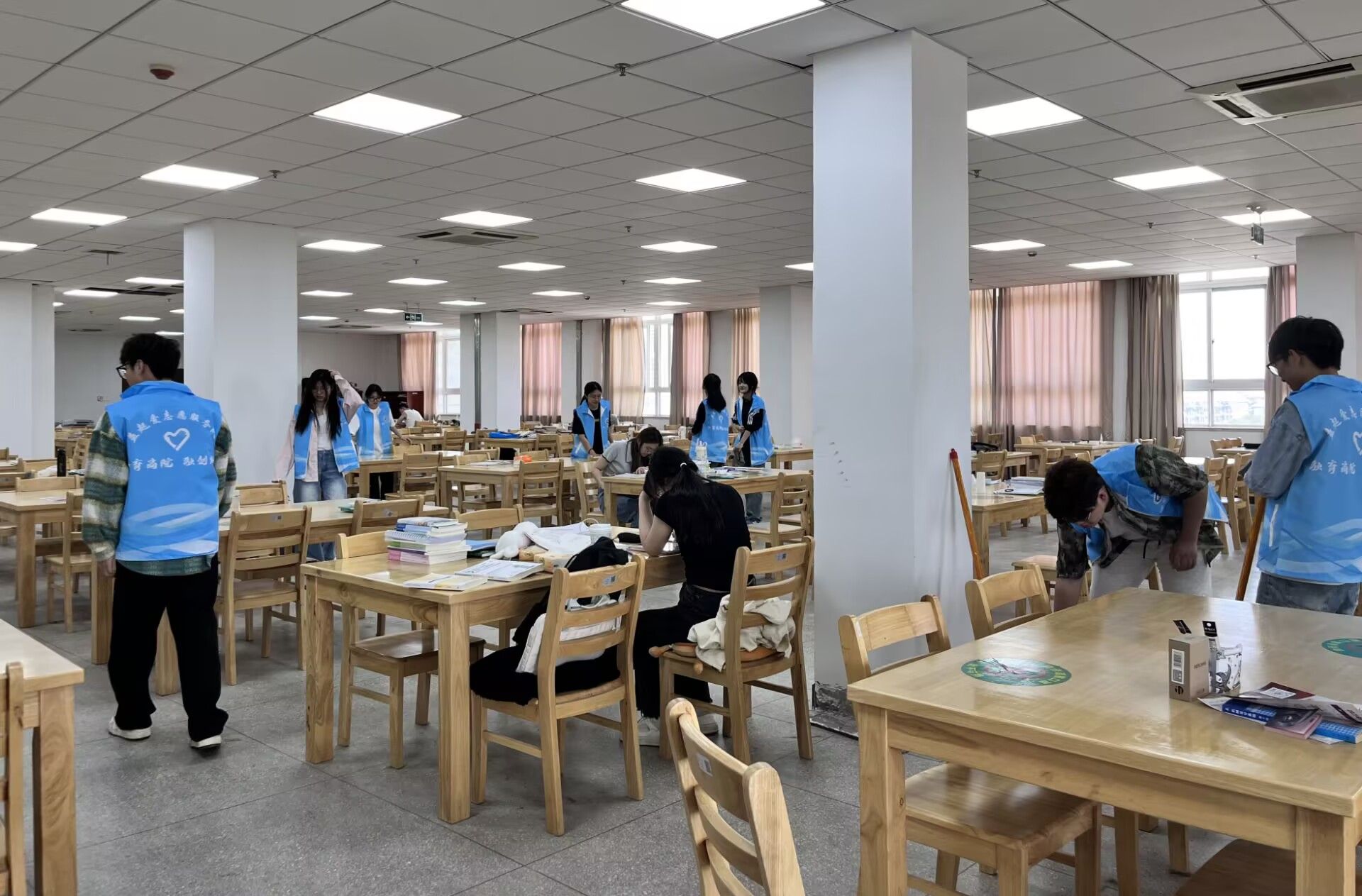 活动当日,志愿者们身着统一队服,早早集合在图书馆门前。在负责人明确分工后,大家迅速投入工作。尽管任务繁重,但大家热情不减,相互配合,高效推进各项清洁工作。一位参与活动的志愿者表示:“图书馆是我们学习知识的殿堂,能为它的整洁贡献一份力量,我觉得很有意义”。