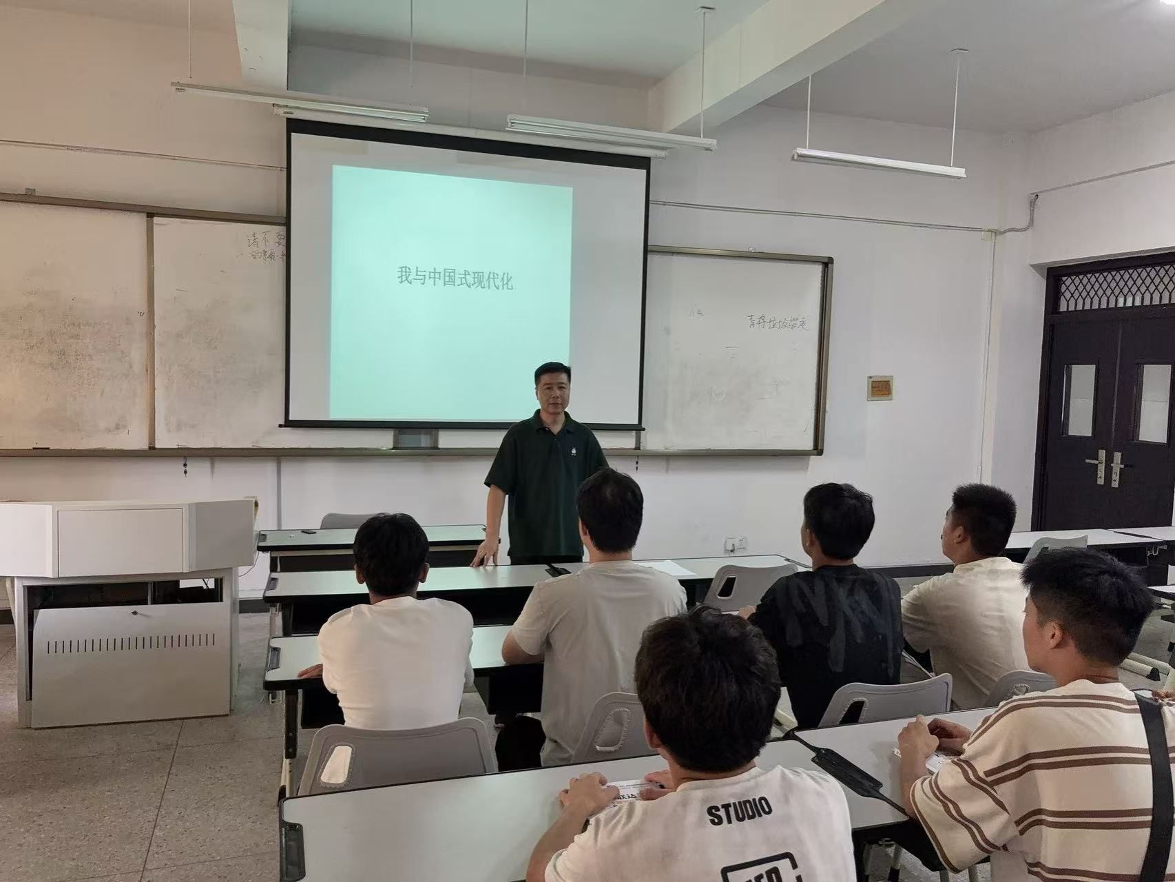 辅导员结合班级专业特色,对学生的发言逐一回应:“中国式现代化的‘中国’二字,既是根基也是底气。作为建工学子,你们的每一张图纸、每一次测量,都是在为‘中国式现代化’添砖加瓦。希望同学们牢记:‘强国有我’不是口号,而是‘学好专业、扎根实践、服务人民’的具体行动。”
