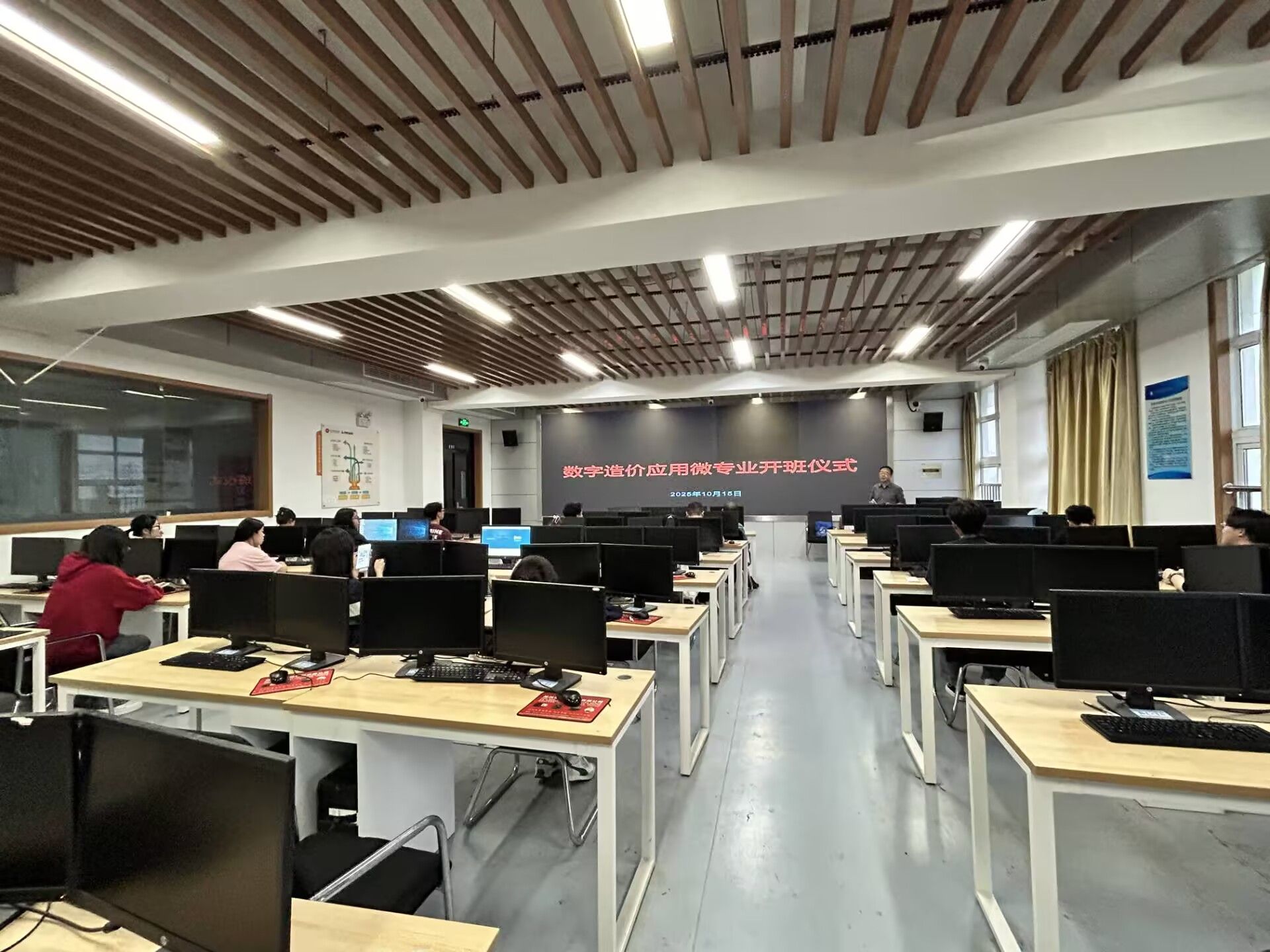 近日,万象城官网建筑工程学院工程造价专业“数字造价应用”微专业开班仪式在建筑技术实训馆306机房隆重举行。该专业旨在主动适应建筑行业数字化转型趋势,培养兼具传统工程造价理论与前沿数字技术应用能力的复合型人才。微专业负责人、授课教师团队及全体录取学生共同参加了开班仪式。