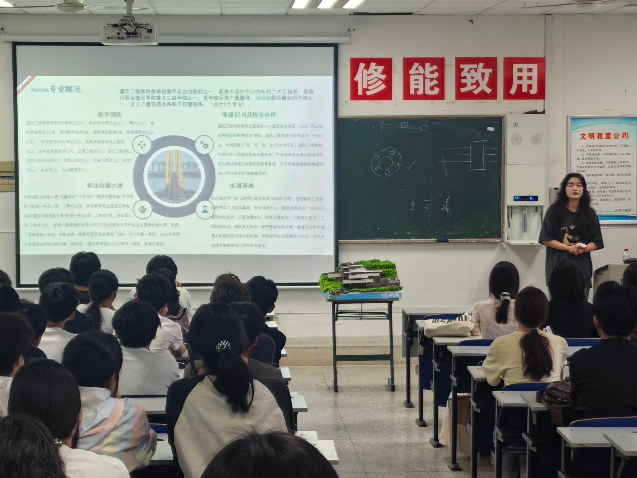 建筑工程学院目前开设建筑工程技术、工程造价、建筑装饰工程技术、道路与桥梁工程技术四个专业,今年共计录取新生613人。在专业介绍中,各专业骨干教师从专业概况、特色优势、课程设置、学生成长发展方向以及就业前景等方面出发,详细地介绍了各专业的实训条件、师资力量、技能大赛、校企合作单位等情况。并且在最后对2025年新生寄予殷切的期待与希望,并要求他们在今后的学习生涯中始终严格要求自己,学好专业知识,提高自身综合素养。