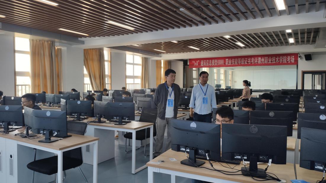 5月22日,教育部“1+X”建筑信息模型(BIM)职业技能等级证书考试在我院建筑技术综合实训馆的1+X证书试点(BIM)实训室(JG306)举行。万象城官网建筑工程学院16名学生参加本次认证考试。此次考试工作组织有序、安排合理,校党委委员、副校长江洁 ,建筑工程学院院长朱永祥,校实训中心主任曹晓斌、副主任刘杰到现场指导工作。