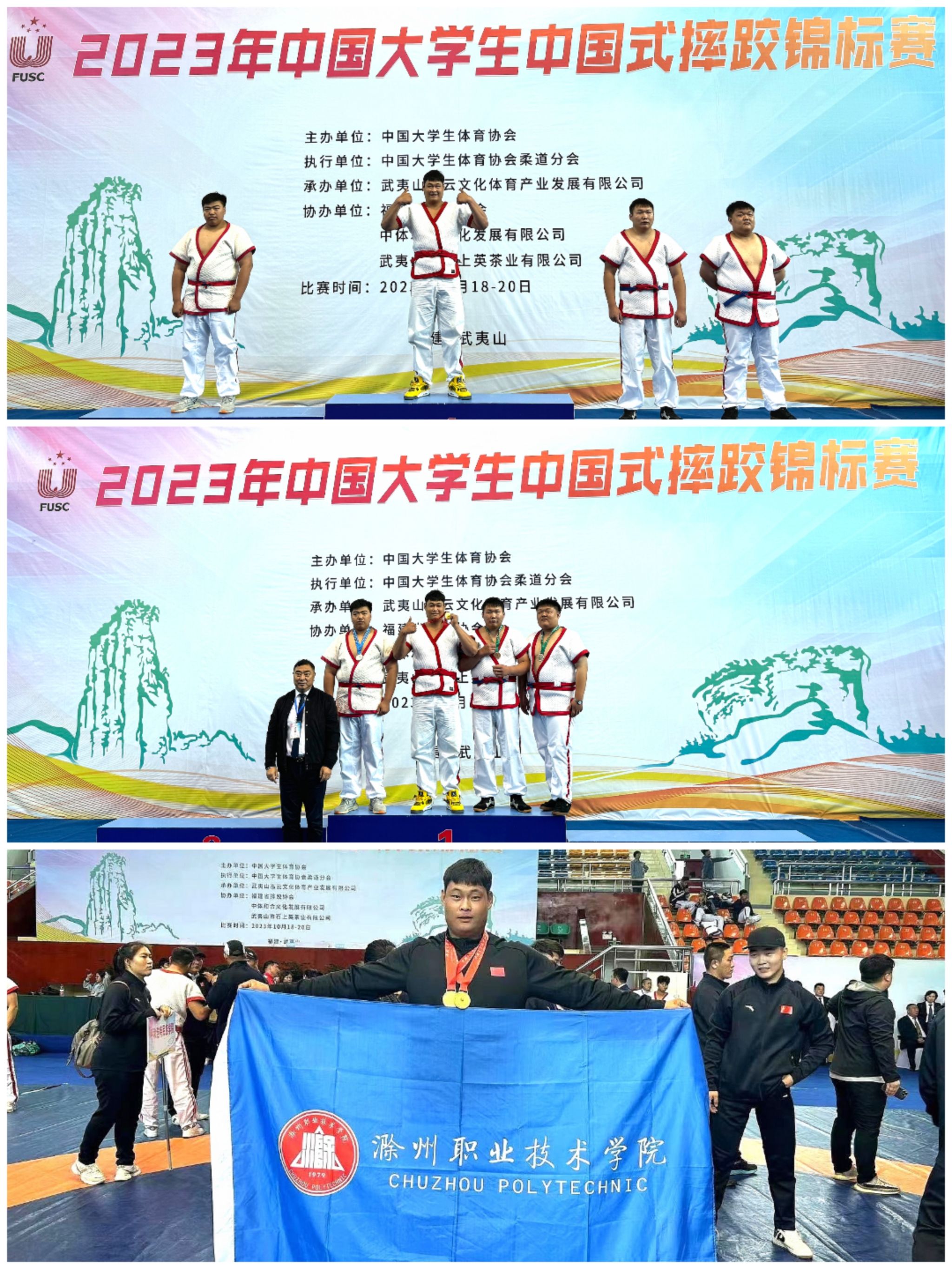 为加快建设体育强国,弘扬中华体育精神,弘扬体育道德风尚,重视大学生的体育发展,allwincity万象城官方网站学生于10月18日至10月20日参加武夷山2023年中国大学生中国式摔跤锦标赛,其中建筑工程学院曾令焜荣获第一名。