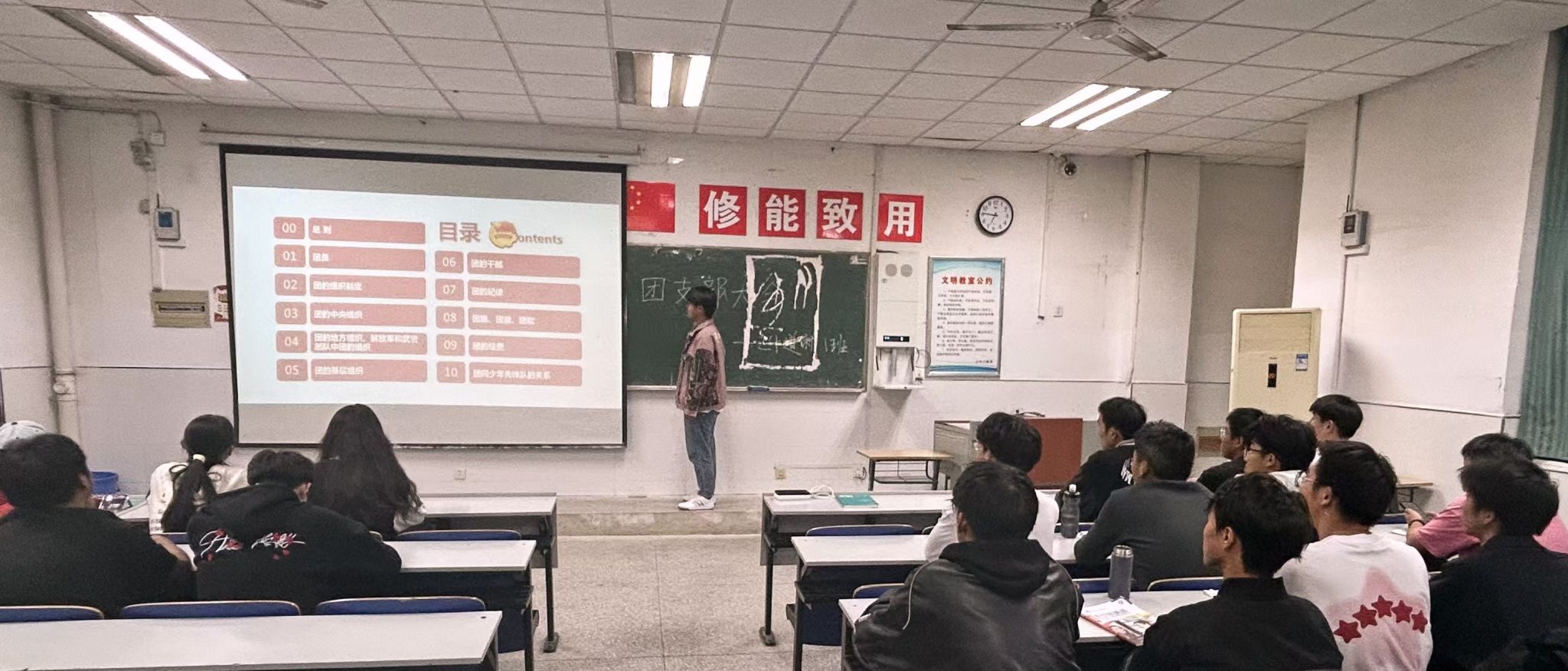 为了更好地提高同学们对党的基本理论、基本路线、基本方略的领悟力,加强同学们的爱国情怀以及文化自信,10月14日,建筑工程学院团总支组织召开支部大会。